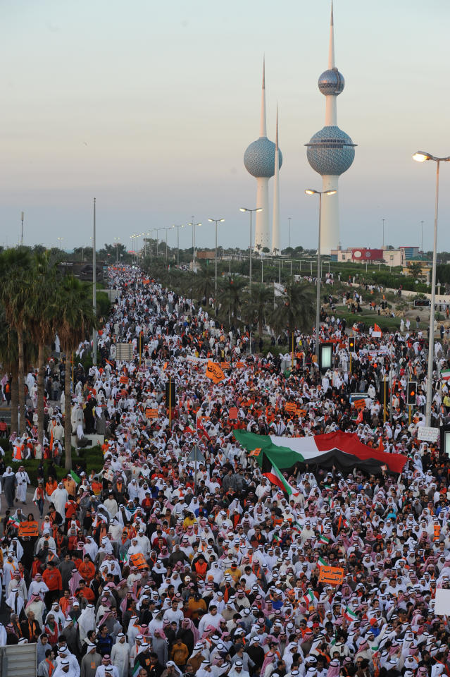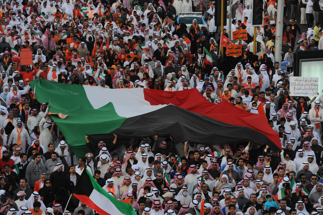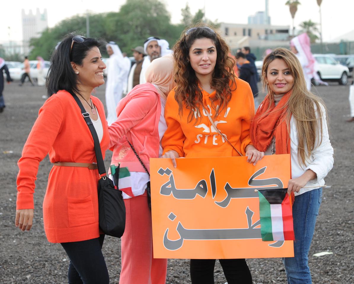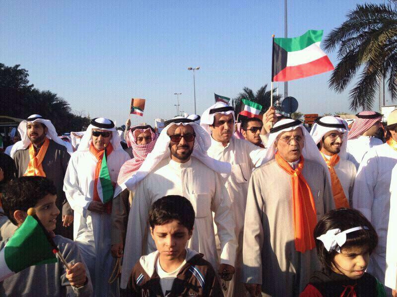بأعداد تجاوزت عشرات الالاف، نجح منظمو "مسيرة كرامة وطن 3" ورجال الشرطة بتسيير المسيرة المرخصة من قبل وزارة الداخلية، والتي شارك فيها المواطنون عصر اليوم، للتعبير عن رفضهم ومقاطعتهم للانتخابات، احتجاجا على مرسوم الصوت الواحد الذي قلص خيارات الناخبين في التصويت من اربعة الى صوت واحد، وكان لافتا حضور كافة القوى السياسية والاطياف الشعبية من المقاطعين بمشاركة نسائية واضحة تخللها حضور اطفال وكبار سن. وبخلاف المسيرات السابقة، كان الهدوء السمة البارزة للفعالية، والتي مرت بسلام من دون اية مصادمات مع قوات الامن الذين ابدوا تعاونا كبيرا مع المشاركين الامر الذي ادى الى تفهم المواطنين بطبيعة عمل رجال الشرطة، بالاضافة الى التنظيم الامني الداعي الى عدم الخروج عن حدود الترخيص الذي منح للمسيرة، حيث انطلقت من امام فندق السفير بمنطقة بنيد القار على شارع الخليج العربي في تمام الساعة الثالثة عصرا متجهة الى موقع ابراج الكويت، بمدة لم تتجاوز الساعة، لكنها اكملت فعالياتها امام الابراج بهتافات "الشعب يريد اسقاط المرسوم" و "وواحد وواحد وواحد..الصوت الواحد مانبيه"، بالاضافة الى الشعارات والاعلام المرفوعة ذات الالوان البرتقالية كلون اتخذه نواب المعارضة ومنظمو المسيرة هوية اعلامية للمقاطعة.وتقدم صفوف المسيرة اغلب نواب المعارضة الذين حمسوا المشاركين لاتمام المسيرة بنجاح والالتزام بتعليمات وزارة الداخلية وعدم الخروج عن تعليمات المنظمين للمحافظة على الجو السلمي العام الذي ساد المسيرة والذي تدعو اليه اللجنة المنظمة، فضلا عن الدعوة الى عدم الخروج عن تلك التعليمات حتى لا تتعرض المسيرة للفشل، ثم لا تصل الرسالة المطلوبة الى السلطة.وحذر المنظمون من المندسين الذين قد يحاولون تخريب المسيرة بافتعال مصادمات مع رجال الامن، حيث نبه النائب السابق احمد السعدون المنظمين الى ضرورة اخذ الحيطة والحذر والتنبيه على المشاركين بالانتباه الابلاغ الفوري لرجال الامن عنهم لاخذ كافة الاحتياطات الامنية وقطع الطريق على كل محاولات التخريب، مشيرا الى ان المسيرة سلمية ولا تدعو الى اي مزاعم اخرى كما يرددها المخربون.