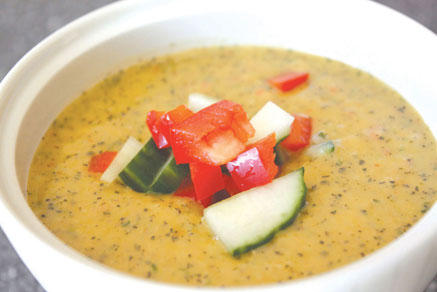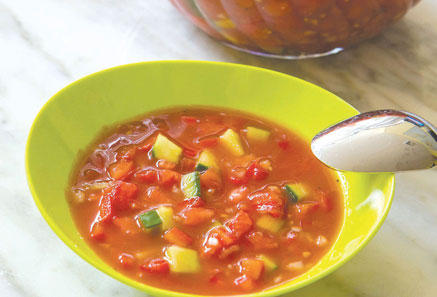 الغاسباتشو الإسباني الكلاسيكي (4 أشخاص )تحمل هذه الوصفة التي يعدّها آل. في. أندرسون من مطعم «سلايت»، ميزات الطبق الإسباني التقليدي، إذ تعتمد في كثافتها على الخبز الجاف واللوز، كما أنها تحتوي على الخلّ وزيت الزيتون البكر الممتاز.