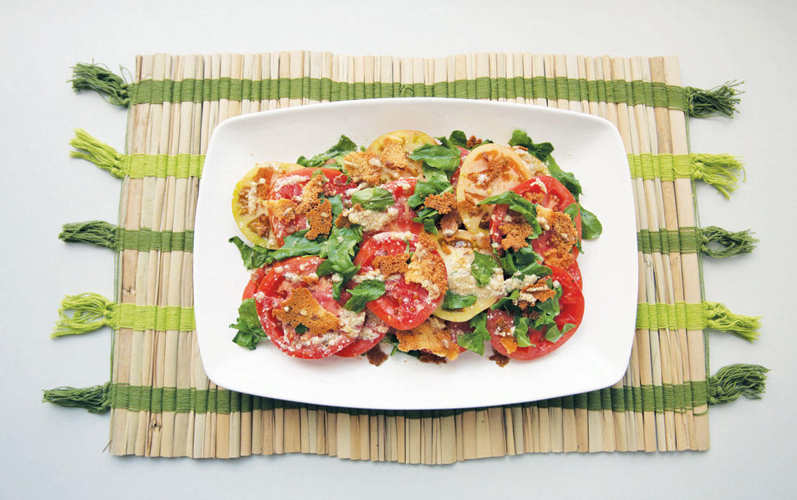 نصائح تتألف صلصة الخل في ثلاثة أرباع الكمية من الزيت والربع من الخل. لذلك، لتحضير كوب من صلصة الخل ستحتاجين إلى ثلاثة أرباع الكوب من الزيت وربع كوب من الخل أو أي سائل حمضي آخر. تختلف الكميات الدقيقة من وصفة إلى أخرى، ويكمن الحل في ضبط المكونات حسب الذوق. إليك بعض النصائح وقائمة من المكونات الأساسية: • احرصي على أن تكون المكونات كلها في درجة حرارة الغرفة كي تتحول الصلصة إلى مستحلب بسهولة. • فيما تمزجين الخليط، أضيفي زيت الزيتون وببطء بتدفق مستمر. يجب أن يتجانس الخليط ببطء، ويتحول إلى مستحلب ويبدو دسمًا. • حضري صلصة الخل قبل ثلاثة أيام وبرديها. عند تحضير السلطة، ضعي الخضار في وعاء وأضيفي بضع ملاعق كبيرة من صلصة الخل لتغطي كل الخضار. المقادير • الزيت: زيت الزيتون الجيد النوعية وقوي النكهة أو الخفيف، أو زيت الكانولا، أو زيوت بذور العنب أو المكسرات مثل الجوز. • الخل أو الأحماض: البلسمك (الأبيض أو الداكن)، خل التفاح، عصير الليمون الطازج، أصناف متنوعة من الفاكهة (مثل التوت البري، الإجاص، أو التوت العليق)، عصير البرتقال، الخل الأبيض أو الأحمر، الرز (متبل أو غير متبل) لنكهة آسيوية، الخل الأبيض العادي. • التوابل: ملح وفلفل، خردل ديجون، أعشاب طازجة أو مجففة، ثوم مفروم، زنجبيل مفروم، عسل، الليمون أو بشر الليمون، جوز مفروم، صلصة الصويا (لزيادة نكهة آسيوية)، كراث مفروم، سكر. صلصة الخل مع خردل ديجون المقادير - ملعقة كبيرة من الكراث المفروم ناعمًا. - نصف ملعقة إلى ملعقة كبيرة من خردل ديجون. - ربع ملعقة صغيرة من الملح. - نصف ملعقة إلى ملعقة كبيرة من عصير الليمون الطازج. - ملعقة كبيرة من الخل الأحمر أو الأبيض. - ثلث إلى نصف كوب من زيت الزيتون الجيد النوعية. - فلفل طازج مطحون. - أعشاب طازجة مفرومة، إذا رغبت في ذلك. الطريقة في وعاء صغير ضعي الكراث، خردل ديجون والملح، ثم أضيفي عصير الليمون والخل وحركي المزيج إلى أن تتجانس المكونات. عندما تختلط بشكل جيد، ابدئي بإضافة الزيت، بشكل مستمر حتى تشكيل مستحلب ناعم. تذوقي المزيج واضبطي التوابل. انهي الصلصة مع قليل من الفلفل الأسود المطحون الطازج والأعشاب، حسب الرغبة. تحتوي على: 59 سعرة حرارية (97 في المئة منها من الدهون)، 7 غرامات من الدهون (غرام من الدهون المشبعة)، 0 غرام من الكربوهيدرات، 0 غرام من البروتين، 62 مليغرامًا من الصوديوم، 0 مليغرام من الكولسترول، 0 غرام من الألياف. تكفي لثمانية أطباق من السلطة. سلطة الكوسا مع البارميزان والصنوبر (6 ) المقادير - ثلث كوب من زيت الزيتون الجيد النوعية. - ملعقتان كبيرتان من عصير الليمون الطازج. - ملعقة صغيرة من الملح الخشن. - نصف ملعقة صغيرة من الفلفل الأسود الطازج المطحون. - ربع ملعقة صغيرة من الفلفل المجفف الأحمر المسحوق. - كيلوغرام من الكوسا المتوسطة الحجم. - نصف كوب من الريحان الطازج المفروم خشنًا. - ربع كوب من الصنوبر أو اللوز المقشر، المحمص. - قطعة صغيرة من جبنة البارميزان. الطريقة -1 في وعاء صغير، اخفقي الزيت وعصير الليمون والملح والفلفل الأسود والفلفل الأحمر المسحوق. ضعي الصلصة جانبًا. -2 باستخدام مقشرة الخضار، اعملي من الأعلى إلى الأسفل على تقطيع الكوسا إلى شرائح. ضعيها في وعاء كبير. أضيفي إليها الريحان والمكسرات، ثم الصلصة؛ وقلبي المزيج. تبليه حسب الذوق بالملح والفلفل. وزعي السلطة على أطباق فردية. باستخدام مقشرة الخضار، اقطعي شرائح رقيقة من قطعة البارميزان وضعيها فوق السلطة. تحتوي على: 187 سعرة حرارية (84 في المئة منها من الدهون)، 18 غرامًا من الدهون (2.5 غ الدهون المشبعة)، 6 غرامات من الكربوهيدرات، 4 غرامات من البروتين، 247 مليغرامًا من الصوديوم، مليغرامين من الكولسترول، غرامين من الألياف. سلطة السيزر مع الطماطم واللحم المقدد (6 ) المقادير - نصف كوب زائد ثلاث ملاعق كبيرة من جبن البارميزان المبشور الطازج، المقسمة. - شريحتان من سلامي البقر. - ملعقة صغيرة ونصف الملعقة من الطحين المتعدد الاستعمالات. - 4 شرائح من الأنشوجة، والم