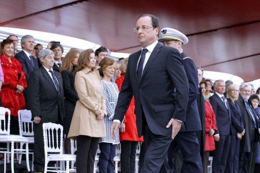 ترأس الرئيس الفرنسي فرنسوا هولاند ترافقه فاليري تريرفيلر السبت اول احتفال بمناسبة العيد الوطني في 14 يوليو في ولايته قبل المشاركة في مقابلة تلفزيونية يتحدث فيها عن المرحلة الاولى من حكمه وبرنامجه الخارجي وحياته الخاصة.