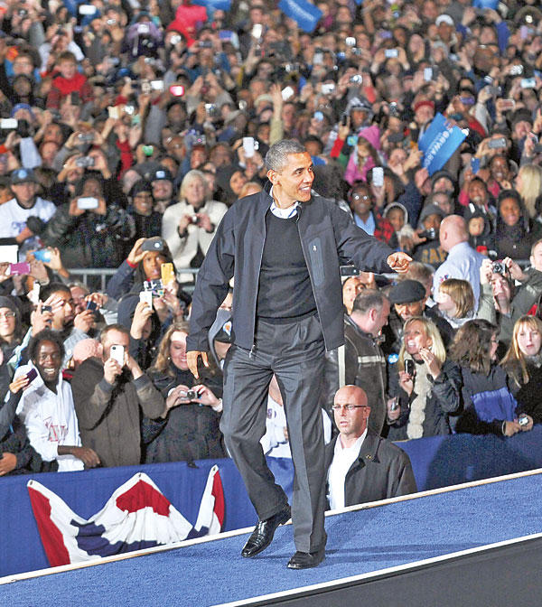 عشية يوم الانتخاب، حمي وطيس الحملة الانتخابية التي تميّزت بالحدّة الشديدة بين المعسكرين الديمقراطي والجمهوري، وتبادل المرشحان باراك أوباما وميت رومني الهجمات أمس، الأمر الذي كشف عن انقسام عمودي في صفوف الشعب الأميركي، بينما رجّحت الاستطلاعات تعادل المرشحَين عشية يوم الاقتراع.
