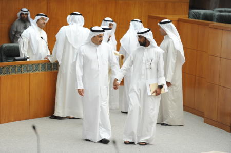 قال النائب مبارك الوعلان لـ النائب في المجلس المبطل د. عبدالله الطريجي بأنه رغم مدة عمه القصيرة إلا أنه أوجع تيار الفساد والعمال، مضيفا بأنه الطريجي سيبقى شامخاً كالجبل.واستنكر الوعلان ما يقومون به ضد الطريجي لمجرد استخدامه حقة الرقابي وفق الدستور، قائلا له "لله درك واهل الكويت يقدرون لك مواقفك الشجاعه الثابته وليس ذلك بغريب كل من تربي ببيت الكرامه والعزه".------------------------------------------------------------------------------------------------------------------قال عضو مجلس الأمة المبطل د.عبدالله الطريجي "نسألهم عن شبهات فساد وعبث في تعيين قياديين برواتب "فلكية" فيتهموننا بالإضرار بالاقتصاد الوطني"، مستدركا بالقول "ومن يسرق ثرواتنا ومقدرات بلدنا يسرح ويمرح". وأضاف الطريجي في تصريح له "نعلم بوجود مخطط لإقصائنا بسبب مواقفنا التي احرجتهم ونعلم بأن للحكومة دور بهذا المخطط فها هي تحيلنا للنيابة بسبب قيامنا بدورنا الرقابي".وفي سياق أخر قال "نحترم رأي الشيخ الحكيم فلاح بن جامع ونعلم مدى حرصه على أمن وإستقرار البلاد"، مضيفا أن "لن ننسى موقفه في الحراك الاخير الذي حل مجلس 2009 وإقالة الحكومة".من جانبه، قال عضو مجلس الأمة المبطل د.عبيد الوسمي أن إتهام النائب في المجلس المبطل د.عبداله الطريجي لإثارته شبهة فساد إداري بهيئة سوق المال بصفته السابقه وباستحدام أداة دستورية وهي السؤال وبتهمة تقويض النظام الإقتصادي، يعتبر نهج خطر.