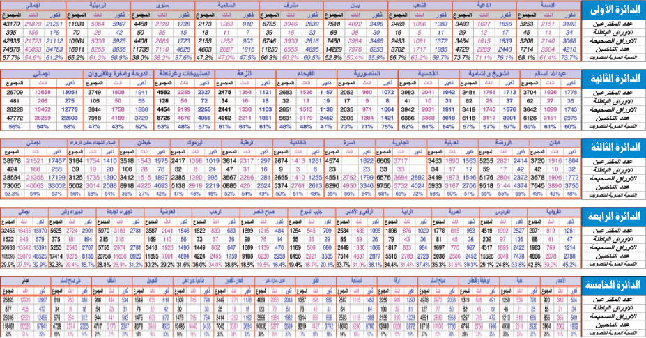 نتائج الانتخابات: المقترعون 167205 من 422569 بنسبة 39.56%