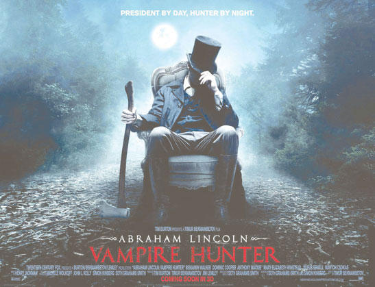 كانت الشمس توشك على الغروب في بحيرة بونتشارترين في أحد الأيام الرطبة في ولاية لويزيانا، في شهر مايو المنصرم، عندما دُعي أبراهام لينكولن لخوض المعركة في حقل عشبي لأجل محاربة العدو الوحشي الذي قتل والدته قبل سنوات. صرخ لينكولن بألم وغضب فيما كان يجلس بثقله فوق عدوه. لم يكن الرئيس الصارم يسعى هذه المرة إلى معالجة المآسي الهائلة الناجمة عن حرب أهلية وحشية ودموية، بل كان ذلك الشاب مستعداً للقتال حتى الموت. لكنّ المضحك في الموضوع هو أن أحداً من حشد المتفرجين لم يتأثر بالمشهد الذي كان لينكولن يحارب فيه مصاص دماء. هذه هي المقاربة الجدية التي يرتكز عليها فيلم Abraham Lincoln: Vampire Hunter الذي يبدو سخيفاً من اسمه.فيلم Abraham Lincoln: Vampire Hunter نسخة مقتبسة من رواية سيث غراهام سميث ومن إنتاج شركة 20th Century Fox ويُعرض بتقنية ثلاثية الأبعاد. في موقع التصوير، وجد فريق الابتكار في الفيلم صعوبة كبيرة في تقديم الموضوع بجدية (تم استعمال حوالى 8 آلاف زيّ مصنوع يدوياً وفؤوس مصنوعة بتقنيات تعود إلى القرن التاسع عشر)، واعتبر فريق العمل أن الفيلم يجب ألا يكون مجرد تجسيد مبهر لأعمال أدبية مملة.
