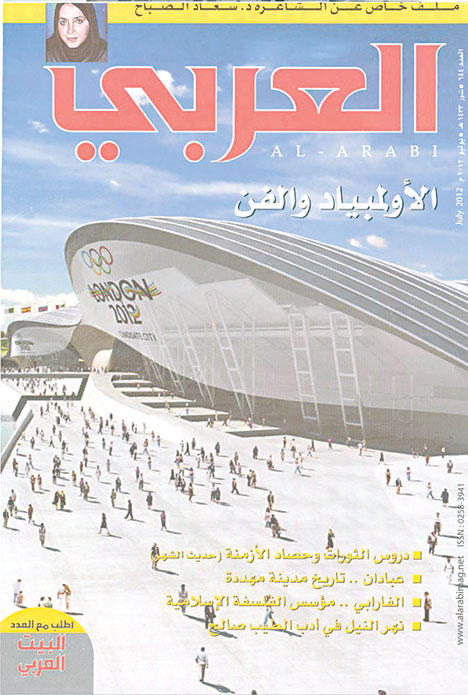 حصلت قبل عدة أسابيع الشاعرة الكويتية سعاد الصباح على وسام الجمهورية التونسية "الصنف الأكبر" الذي منحه لها الرئيس التونسي المنصف المرزوقي، "تقديرا لما قامت به من أعمال أدبية وإنسانية خلال مسيرة عملها الطويلة"، وفي الشهر القادم تقام في العاصمة الكورية الجنوبية سيول مراسم منح جائزة (مانهي) في الآداب، وهي أرفع جائزة أدبية هناك، للشاعرة الكويتية الكبيرة.يشارك في الملف كل من الشاعرة سعدية مفرح التي تكتب مقالا بعنوان "الشاعرة... الشاعرة"، ويكتب شوقي بزيع في الملف مقالا بعنوان "سعاد الصباح وتأنيث العالم بالكتابة".بينما يتناول الكاتب بشير عياد جانباً مختلفاً وهو منجز الدعم الثقافي الذي قدمته سعاد الصباح للثقافة العربية في موضوع بعنوان "المال في خدمة الثقافة... مشروعات سعاد الصباح نموذجا" يتناول فيه إسهامات سعاد الصباح في المنجز الثقافي نشراً ودعماً وبالجوائز الإبداعية التي شجعت مئات من الكتاب العرب وغيرها.هذا تكريم للشعر في زمن الثورة، كما جاء في تقديم العربي عددها لقرائها، وهي الثورات التي تستعيد ذاكرة الثورات العربية الأولى خاصة أننا وكما يشير الدكتور سليمان العسكري في افتتاحيته لهذا العدد، نحتفل بمرور نصف قرن على نجاح الثورة الجزائرية ونحو ستة عقود على قيام ثورة 23 يوليو في مصر، لكن رئيس التحرير يرى أن ثورتنا الجديدة ينبغي أن تكون بالعلم، ثورة لا تستخدم القنابل لكنها تستفيد بالعقل وتدين بقيمة العمل.ولتزامن شهر رمضان الكريم مع هذا العدد تنشر "العربي" موضوعين يتناسبان مع أجواء الشهر الفضيل أولهما للدكتور قاسم عبده قاسم بعنوان "رمضان بين الراديو والتلفزيون" يتأمل فيه تاريخ المواسم التلفزيونية والإذاعية خلال أشهر رمضان في العقود الماضية.بينما يترجم الكاتب أحمد يماني مقالا للمستشرق الإسباني فرناندو سانشيث دراجوو، بعنوان "ما تدين به إسبانيا للإسلام". أولمبياد لندنوبمناسبة الأولمبياد الذي يقام هذا الشهر تنشر العربي ملفاً موسعاً بعنوان الأولمبياد والفن يقدم فيه أشرف أبواليزيد رصداً تفصيليا للمظاهر الفنية المتعلقة بأولمبياد لندن هذا العام بدءاً من تصميم شعاره وتشييد عمارته وإقامة الفعاليات الفنية المصاحبة له.ويواجه سيد محمود الناقد والوزير المصري الأسبق للثقافة شاكر عبدالحميد في حوار شامل حول الثورات العربية والخيال الذي يعد أحد اهتمامات عبدالحميد في العديد من دراساته الأكاديمية والنقدية.وفي الفنون تتناول الدكتورة أمل نصر موضوع الجداريات الفنية وتتناول تاريخه والذي شهد اليوم انتعاشاً ملحوظاً في الثورات العربية التي شهدت ثورة فنية موازية تعرف باسم "فن الجرافيتي".يضم العدد العديد من المقالات الأخرى الثابتة إضافة إلى باب (قصص على الهواء) الذي يقوم بتحكيم قصصه هذا الشهر الكاتب السعودي يوسف المحيميد، وتنشر العربي القصة الفائزة للقاص الكويتي بسام المسلم.ومع العدد يوزع ملحق البيت العربي الذي يضم عددا من الموضوعات التي تهم كل أفراد الأسرة العربية في العمارة والفنون والطهي والتصميم الداخلي والتربية.