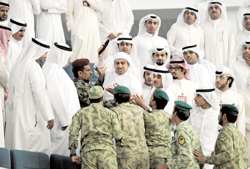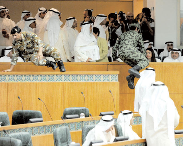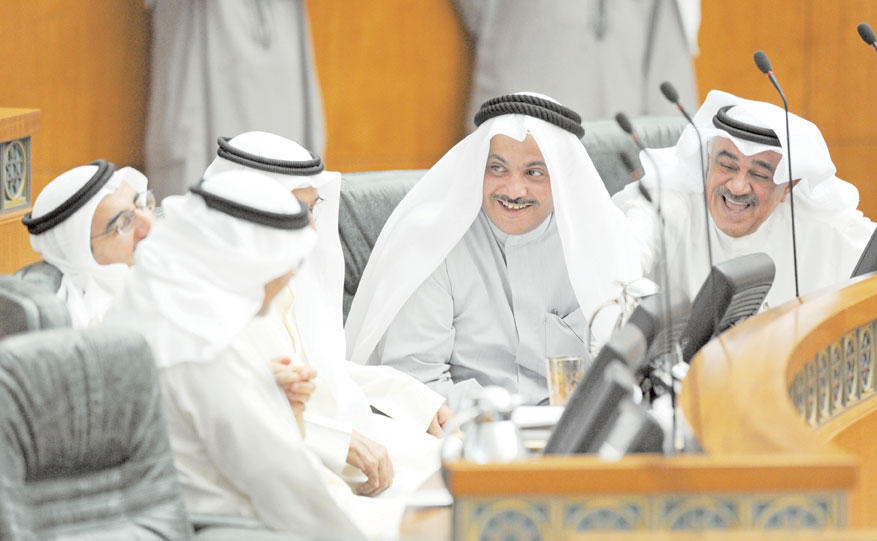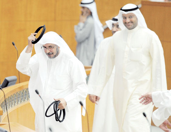 اكتفى مجلس الأمة بمناقشة استجواب النائب محمد الجويهل للنائب الأول لرئيس مجلس الوزراء وزير الداخلية الشيخ أحمد الحمود، بعدما لم يتقدم عشرة نواب بطلب طرح ثقة بالوزير، وبينما تحدث النائبان علي الدقباسي وفلاح الصواغ معارضين للاستجواب، تحدث النائبان فيصل الدويسان وعلي الراشد مؤيدين له، في جلسة شهدت فاصلاً من «الهرج والمرج» في أغلب أوقاتها، منذ أن اعتلى النائب محمد الجويهل منصة الاستجواب حتى انتهاء المناقشة. ولم يتحدث الجويهل في مرافعته الأولى المخصص لها ساعة ونصف الساعة سوى ثلاث دقائق، عارضاً صورة لجواز سفر أميركي يزعم أنه خاص بابن نائب رئيس مجلس الأمة خالد السلطان، الأمر الذي حدا بوزير الداخلية أن يرد عليه الأمر بالمثل، إذ فضل هو الآخر عدم الرد والاكتفاء بتسليم مذكرة رده المطبوعة للأمين العام لتوزيعها على الأعضاء، وهو ما اعترض عليه رئيس مجلس الأمة، مبينا أنه يفترض على الوزير أن يفند محاور الاستجواب، والا يعتبر أنه مسلم بما جاء في محاورها. ثم تحدث الجويهل في مرافعته الثانية واستغرق نصف ساعة كاملة، وركز حديثه فيها على قضيتي التجنيس والمزدوجين، إضافة إلى الحديث عن مبنى مخفر السلام، الذي بين أن به مخالفات مالية، وفند الوزير ما طرحه الجويهل، وأشار إلى أن قضية ابن السلطان يتابعها مع وزير الخارجية للتأكد منها. وكان مجلس الأمة قد وافق على رسالة لجنة التحقيق في التحويلات الخارجية بتأجيل إنجاز تقريرها حتى بداية دور الانعقاد المقبل، والاستعانة بديوان المحاسبة، وسط عدم موافقة من الحكومة، الأمر الذي أثار حفيظة الأغلبية، وجعلهم يهاجمون الحكومة واصفين إياها بالفاشلة، كما وافق على رسالة اللجنة المالية بتأجيل مناقشة قانون المناقصات شهراً، على أن يناقش في جلسة 5 يونيو.افتتح رئيس مجلس الأمة بالانابة خالد السلطان الجلسة الساعة التاسعة والنصف، بعد رفعها نصف ساعة نتيجة لعدم اكتمال النصاب، وتلا الأمين العام اسماء الحضور والمعتذرين.وأشار السلطان الى انه في الجلسة السابقة كانت هناك رسالة واردة من اللجنة المالية.وتحدث النائب محمد الصقر، قائلا: «تقدمت قبل فترة وفي جلسة 24 ابريل بطلب ووقع معي 45 نائبا لاستعجال اللجنة التشريعية، وهناك اقتراحات اخرى مشابهة، لكن لا تطلب الاستعجال فلماذا يدمجون اقتراحاتي مع الاقتراحات الاخرى؟، اتمنى على اللجنة التشريعية ان تجتمع على هامش الجلسة».وشدد مقرر اللجنة التشريعية محمد الدلال ان اللجنة لن تحيد عن تكليفها، الا انه بأغلبية اعضائها قررت تأجيل مناقشة الموضوع اسبوعين، وسيدرج في جدول اعمال الجلسة المقبلة.وأكد السلطان انه يفترض أن تأتي رسالة واردة توضح ذلك، والا فالموضوع يجب ان يكون مدرجا.واكد الصقر انه يخشى ان يكون هو المقصود بإجراء اللجنة التشريعية، قائلا «أنا متأكد من عدم وجود قصد، واعلم حرص الدلال لانه مشارك لي في تقديم الاقتراح لكن يجب ان تتقدم اللجنة التشريعية برسالة تطلب فيها التأجيل».الرسائل الواردةوانتقل المجلس الى مناقشة بند الرسائل الواردة، وسأل السلطان هل يوافق المجلس على الرسائل الواردة؟، ووافق المجلس.وقال النائب علي الدقباسي اريد التحدث عن الرسالة الاولى، واطالب بتثبيت طلب لجنة التحويلات بالتمديد الى دور الانعقاد المقبل، فنحن مع ان تحقق اللجنة اهدافها، لافتا الى ان معظم من تم استدعاؤهم يقولون لا يعلمون، متسائلا «من يعلم اذا؟».واضاف الدقباسي ان هناك من يحاول تعطيل عمل لجان التحقيق والتهديد بالحل، فأهلا بالحل فنحن في مجلس وليس بالسيرك ونقبل بالحل اذا كان لمصلحة الوطن والمواطن.وقال النائب فلاح الصواغ في نقطة نظام، ان استقالة النائب محمد الكندري من لجنة الشكاوى لفتح المجال امام زميله النائب سعد الخنفور وليس هناك سبب آخر.استقالة الراشدوقال النائب فيصل الدويسان «سأعلق على الرسالة الرابعة، حول استقالة علي الراشد من اللجنة التشريعية اعتراضا على تعيين المحامي محمد عبدالقادر الجاسم مستشارا لها فالجاسم معروف بتوجهات