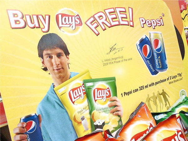 يعد النجم الأرجنتيني ليونيل ميسي مهاجم فريق برشلونة هدفا لشركات الإعلان والماركات العالمية وكان آخرها بطولته لشركة "ليز" المنتجة لرقائق البطاطس.