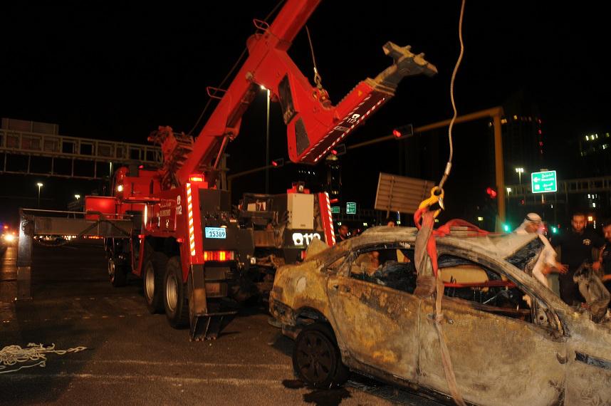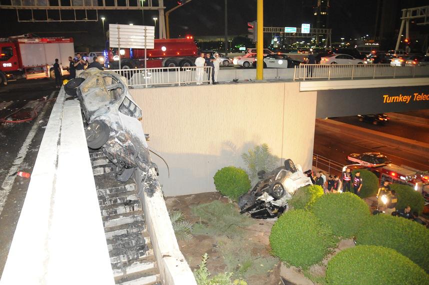 وتبين ان الحادث عبارة عن تصادم مركبتين ، نتيجة قوة التصادم أدى ذلك إلى إنقلاب وسقوط سيارة من أعلى الجسر إلى الأرض والسيارة الأخرى انقلبت ايضا وسقطت على زاوية المشاة واندلعة فيها النيران مما أدى ذلك الحادث إلى وفاة مواطن كويتي عن عمر يناهز ٢٦ عام وإصابة مواطن اخر وتم نقلة إلى المستشفى ليتلقى العلاج اللازم.