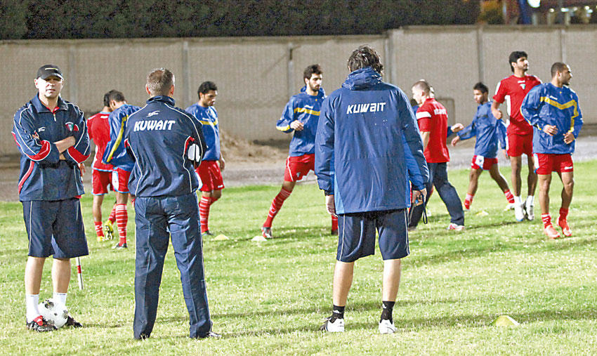 يتشكل وفد المنتخب من عضو اللجنة الفنية يوسف اليتامى (رئيساً للوفد)، وأسامة حسين (مديراً للفريق)، وعلي محمود مشرفاً، والزميل طلال المحطب (منسقاً إعلامياً)، والدكتور عبدالمجيد البناي، والدكتور علي الشمالي (اختصاصي علاج الطبيعي)، والصربي غوران تافاريتش (مدرباً)، والصربي غوران ماتكوفيتش (مساعد مدرب).بالإضافة إلى 24 لاعبا وهم، طلال العامر، وفهد الابراهيم، وضاري سعيد، وعبدالعزيز المشعان، ومحمد راشد، وحمد امان، ونواف الخالدي، وخالد ابراهيم، وبدر المطوع، وعامر معتوق، ومحمد الفهد، وفهد عوض، وعبدالهادي خميس، ووليد علي، وفهد العنزي، وحسين حاكم، ويوسف ناصر، وطلال فاضل، وحميد سيد يوسف، ومحمد دهش، وعبدالرحمن باني، في حين يغادر مع الفريق اللاعبان مساعد ندا وحسين فاضل لاستكمال برنامجهم التأهيلي.ويتخلف عن المغادرة مع الوفد لاعبو العربي (خالد الرشيدي، وفهد الرشيدي، وأحمد الرشيدي، وطلال العنزي، وعبدالعزيز السليمي، وأحمد عبدالغفور)، لمشاركتهم مع ناديهم في بطولة كأس الاتحاد العربي، على أن يلتحقوا بالوفد يوم 28 الجاري.وكان الأزرق قد باشر تدريباته يومي الاثنين والثلاثاء الماضيين، على ملعب المرحوم عبدالرحمن البكر باتحاد كرة القدم، وذلك من دون لاعبي العربي والكويت، لمشاركتهم في مواجهة الفريقين مساء أمس الأول في إياب دور الثمانية لبطولة كأس سمو ولي العهد. غوران: سأركز على الجوانب الفنيةوأكد غوران في تصريح خاص لـ"الجريدة" أن معسكر تركيا سيكون فرصة رائعة في هذا التوقيت لإعداد اللاعبين فنياً للبطولة، مشيراً إلى أن معدل اللياقة البدنية عند اللاعبين وصل إلى القمة، لاسيما بعد مشاركتهم مع أنديتهم خلال الفترة الماضية في أكثر من بطولة.وأوضح غوران أنه سيركز على النواحي الفنية خلال المعسكر بشكل أكبر، وكذلك متابعة تسجيلات حديثة للمنتخبات التي سيواجهها الأزرق في المجموعة (لبنان، وفلسطين، وعمان).وعن عدم ضمه للاعب العربي علي مقصيد في القائمة التي ستشارك في بطولة خليجي 21 بالبحرين علق غوران قائلاً "اعتقد هذا الكلام سابق لأوانه، دعونا ننتهي أولاً من بطولة غرب آسيا، ثم نفكر في قائمة خليجي 21، وعلي أي حال الباب سيظل مفتوحاً لضم جميع اللاعبين، الذين سيثبتون جدارتهم باللعب للأزرق".