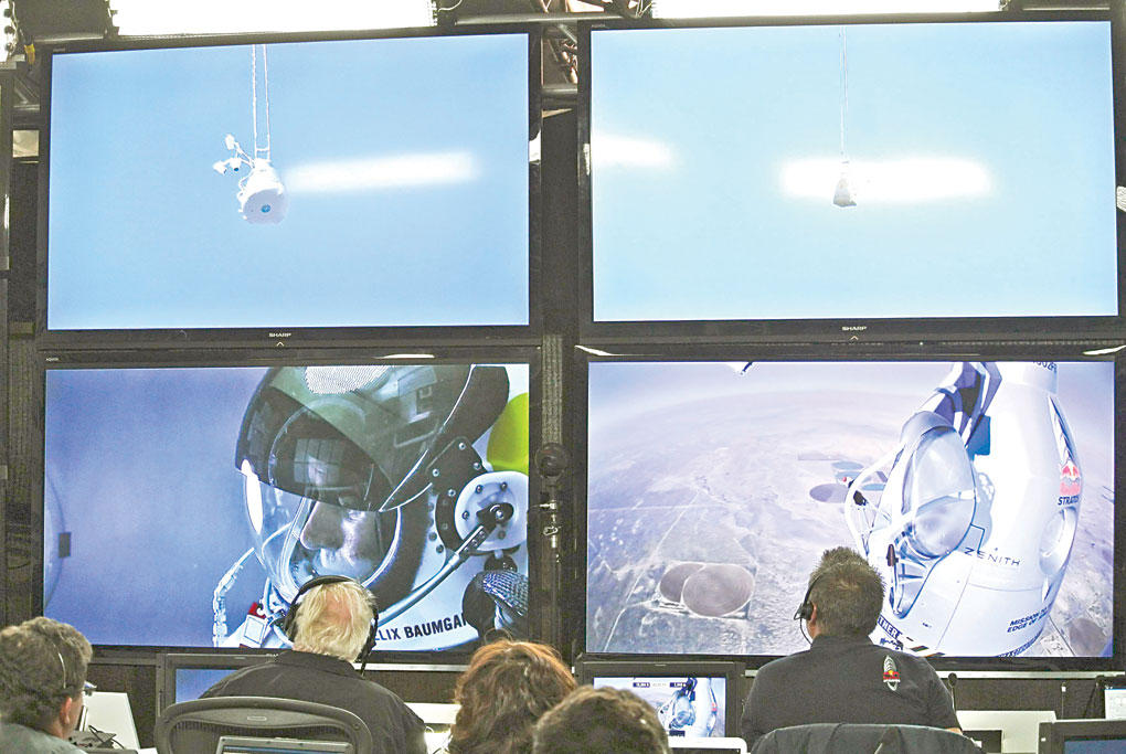 هبط المغامر النمساوي فيليكس باومغارتنر أمس بسلام من ارتفاع يزيد قليلاً على 39 ألف متر، عند حدود الغلاف الجوي للأرض، في سماء نيومكسيكو، جنوب غرب الولايات المتحدة.واستغرق هبوط باومغارتنر (43 عاماً) نحو ثماني دقائق، ليحطم بذلك الرقم القياسي العالمي في السقوط الحر، الذي سجله في عام 1960 الكولونيل السابق في سلاح الجو الأميركي جو كتنجر، من ارتفاع 31333 متراً من منطاد هيليوم أيضاً. وكانت رحلة صعوده إلى الفضاء الخارجي استغرقت أكثر من ساعتين و20 دقيقة، وبثت رحلة الصعود والهبوط على الهواء مباشرة قناة "mbc action" التي تملك الحقوق الحصرية لنقلها في الشرق الأوسط وشمال إفريقيا.