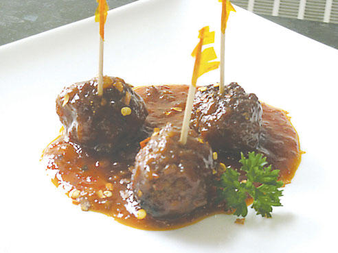 تشكّل كرات اللحم أحد أصناف المقبلات الأهم، إذ تكفي لأعداد كبيرة من الناس، فضلاً عن أنها ملائمة جدًا إن اشتريتها معدّة مسبقًا. تبيع المتاجر والمحال الكبرى أكياسًا تحتوي على كيلوغرامين أو أكثر من كرات اللحم المطهوة بالكامل.إن كنت لا تحبين كرات لحم البقر، تتوافر في متاجر عدة كرات من لحم الحبش. تستطيعين أيضًا أن تعدي هذه الكرات أنت بنفسك إن تسنى لك الوقت الكافي.تُعدّ هذه الوصفة بأكملها في قدر الطهو على البطيء (slow cooker)، ما يعني أن بإمكانك وضعها في القدر والاهتمام بشؤون أخرى. عندما تنضج، ضعي القدر على نمط «إبقاء الطعام ساخنًا» وقدمي الكرات من الأعلى. كذلك تستطيعين إعداد هذا الطبق في الفرن.مع هذه الوصفة، باستطاعتك تحمير الكرات المثلجة في مقلاة. تتطلب وصفات كثيرة تُعدّ في قدر الطهو على البطيء تحمير اللحم والدجاج قبل إضافتهما إليها كي يتمتعان بطبقة خارجية مقرمشة.هذه الوصفة مستوحاة من سوزان سيل من لانسينغ بولاية ميشيغان في الولايات المتحدة. وتُعتبر نسخة معدّلة من كرات اللحم التي شاع تقديمها في الحفلات في ستينيات القرن الماضي والتي تُغلّف بهلام التوت الممزوج مع الصلصة الحارة. تُعتبر صلصة Penzeys Spices Raspberry Enlightenment المكون الرئيس (www.penzeys.com)، فهي تتمتع بمذاق حلو بعض الشيء، إذ تتألف من توت العليق، الماء، السكر، نشاء التابيوكا، حامض السيتريك، وعدد من التوابل.عند مزج مكونات هذه الوصفة كافة معًا وطهوها مع كرات اللحم، تعطيها الصلصة ثلاث نكهات: الحلوة والحارة والحامضة بالترتيب عينه. يمكنك تقديم كرات اللحم كطبق رئيس إن شئت. قدميها مع الرز الأسمر أو الأبيض المطهو مع قليل من شرائح الفليفلة والبازيلاء المقلاة.المقادير- ملعقتان من زيت الكانولا، كل منهما على حدة.- كيلوغرام ونصف الكيلوغرام (وفق حجم قدر الطهو البطيء التي تملكينها) من كرات اللحم المجلدة.- مرطبان (278 غرامًا) من صلصة Penzeys Raspberry Enlightenment. - 280 غرامًا من الصلصة الحلوة والحامضة.- مرطبان (340 غرامًا) من هلام (مربى) البرتقال.- كوب من خردل عسل العنبية أو الكرز أو خردل العسل العادي.- نصف كوب (أو حسب الذوق) من صلصة الثوم الحارة.الطريقة-1 إذا أردت تحمير كرات اللحم، حمي ملعقة كبيرة من زيت الكانولا في مقلاة كبيرة على حرارة متوسطة. اعملي على دفعات، مضيفة نصف كمية كرات اللحم إلى المقلاة. قليها مدة 3 دقائق، محركةً المقلاة من حين إلى آخر كي تحمر جوانب الكرات كافة.-2 ضعي كرات اللحم في قدر الطهو على البطيء. في وعاء متوسط الحجم، امزجي المكونات الأخرى كافة معًا وحركيها جيدًا إلى أن تحصلي على خليط متجانس صبيه عندئذٍ فوق الكرات.-3 اطهي كرات اللحم على حرارة عالية مدة ساعتين، ثم اخفضي الحرارة وتابعي الطهور إلى أن تنضج الكرات، محركةً إياها من حين إلى آخر.-4 يمكنك أيضًا إعداد هذه الكرات في الفرن. حمي هذا الأخير على حرارة 175 درجة مئوية. حمري الكرات كما ذكرنا أعلاه ومن ثم ضعيها في طبق عميق يمكنك إدخاله إلى الفرن. قد تُضطرين إلى استخدام طبقين. اخلطي بعد ذلك المكونات المتبقية معًا وصبيها فوق الكرات. غطي الطبق بورق ألمنيوم واتركيه في الفرن مدة ساعة أو إلى أن ينضج اللحم.في كل كرة لحم: 62 سعرة حرارية (41% من الدهون)، 3 غرامات من الدهون (غرام من الدهون المشبعة)، 5 غرامات من النشويات، غرام من البروتين، 149 مليغرامًا من الصوديوم، 3 مليغرامات من الكولسترول، و0 غرام من الألياف.