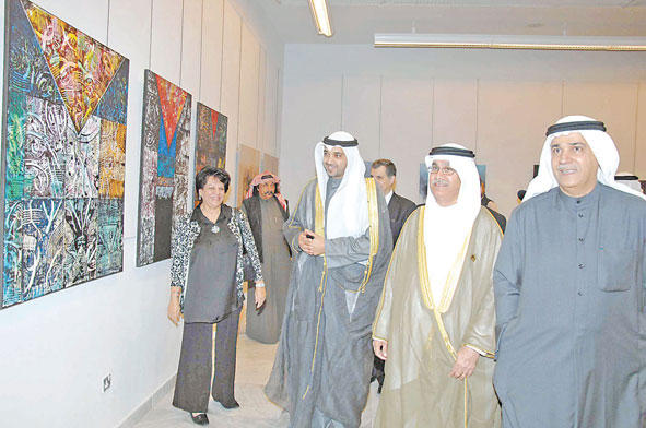 وأكد وزير الإعلام أهمية رصد وتأمل هذه الفعالية للوصول إلى نتائج إيجابية حول نوعية الفعل الثقافي الذي ستقدمه هذه المجموعة من المبدعين من البلدين، مشدداً على ضرورة الاحتفاء بالفنون التشكيلية التي تسجل صورة متطورة عن المشهد التشكيلي الخليجي، ويرى أن مستوى الأعمال المعروضة يعكس واقع التطور في هذا الشأن.وعن هذه الفعالية الثقافة المتزامنة مع العيد الوطني لدولة الإمارات العربية المتحدة، هنأ العبدالله رئيس دولة الإمارات العربية المتحدة الشيخ خليفة بن زايد آل نهيان والشعب الإماراتي الشقيق بذكرى العيد الوطني الـ41 لبلادهم، متمنياً لهم التطور والسداد، مبيناً أن الكويت تستضيف المعرض الذي يأتي بالتعاون بين سفارة دولة الإمارات العربية المتحدة لدى الكويت ممثلة بمؤسسة سلطان بن علي العويس الثقافية والمجلس الوطني للثقافة والفنون والآداب، ويقول ضمن هذا الإطار: «نفخر كخليجيين بهذه الأعمال ومستواها الفني المتطور».بدوره، أكد السفير الإماراتي لدى الكويت د.علي بن شكر أهمية تجسيد العمل المشترك بين البلدين ضمن فعاليات فنية وثقافية تعكس واقع المشهدين في الدولتين الشقيقتين الإمارات والكويت، مبيناً أن لغة الفن يشترك فيها كل العالم عبر تجسيد مشاهد منتقاة بعناية من الواقع لاسيما أن بين البلدين قواسم مشتركة فنياً واجتماعياً، مؤكداً حرص دولة الإمارات على الاحتفال في الكويت بمناسبة مرور 41 عاماً على استقلال دولة الإمارات. وأضاف السفير: «نحن نحتفل بعيدنا الوطني في بلدنا الثاني نظراً لتميز العلاقات بين الدولتين ونعتبر هذا اليوم مشتركا بين العائلة الواحدة في الكويت والإمارات».وفي حديث عن هدف الفعالية، يرى السفير أن المعرض ليس توثيقاً وحسب، بل هو تجسيد للعمل المشترك بين المجتمعين الكويتي والإماراتي كونهما مجتمعين متجانسين، آملاً مضاعفة عدد الفعاليات الثقافية المشتركة لما لها من دور إيجابي في التقريب بين الشعوب.إثراء المشهد التشكيلي أما مدير إدارة الفنون التشكيلية في المجلس الوطني للثقافة والفنون والآداب محمد العسعوسي، فشدد على أهمية تضافر الجهد الدبلوماسي مع العمل الثقافي لتقديم فعاليات ثقافية متزامنة مع الاحتفالات الوطنية، مشيرا إلى اهتمام دولة الإمارات العربية المتحدة بالفعل الثقافي من خلال تنظيم أنشطة تشكيلية، ويقول ضمن هذا السياق: «المجلس الوطني للثقافة والفنون والآداب يرحب باستضافة فعاليات مشتركة مع دول مجلس التعاون الخليجي تساهم في إثراء المشهد التشكيلي».وعن أهداف هذه الفعاليات المشتركة، يرى أن هذه النوعية من الأعمال تنمي الذوق العام وتعمل على تبادل الخبرات وتنشيط المشهد الثقافي.توضيحمن جانبه، أكد رئيس الجمعية الكويتية للفنون التشكيلية الفنان عبدالرسول سلمان مشاركة أربعة فنانين من أعضاء الجمعية هم سعد البلوشي وعبدالله العتيبي وأحمد جوهر وخالد الشطي، إلى جانب مجموعة أخرى من الفنانين الكويتيين والإماراتيين، موضحاً أنه لم يشارك في المعرض بينما وضعت بالخطأ صورته الشخصية وإحدى لوحاته.الفنانون المشاركون: من الكويت سامي محمد وحميد خزعل وأميرة بهبهاني ومحمود أشكناني ثريا البقصمي وعبدالله العتيبي وأحمد جوهر وخالد الشطي وسعد البلوشي.ومن الإمارات، عبدالقادر الريس وعبدالرحيم سالم والدكتور يوسف علي ومنى الخاجة وعبيد سرور وجلال لقمان ونجاة مكي ومحمد القصاب وعائشة جمعة.
