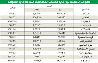 كشفت إحصائية أعدتها «الجريدة» أن حقوق المساهمين في 166 شركة كويتية مدرجة في مختلف القطاعات بسوق الكويت للأوراق المالية بلغت قيمتها 17.9 مليار دينار، وذلك خلال الأشهر التسعة الأولى من عام 2012، مقارنة مع حقوق مساهمين قدرت قيمتها بـ18.01 مليار دينار، وذلك خلال الفترة المذكورة من عام 2011، أي بانخفاض ما نسبته 0.3 في المئة، وبانخفاض قيمته 70.1 مليون دينار.وتصدرت الشركات المدرجة في قطاع الرعاية الصحية باقي الشركات المدرجة في القطاعات الأخرى المدرجة في البورصة، وذلك من حيث الأعلى نموا في حقوق المساهمين، إذ ان حقوق مساهميها نمت بما نسبته 8.43 في المئة، وبلغت 84.8 مليون دينار، وذلك خلال فترة الأشهر التسعة الأولى من العام الجاري، مقارنة بحقوق قدرها 78.2 مليونا خلال الفترة نفسها من العام الماضي، أي بارتفاع قدره 6.6 ملايين دينار.