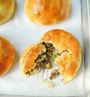 لا تميلي إلى استخدام العجينة المبردة أو لفائف الكرواسون. فالأولى قاسية جدًا ومطاطية للحشو، والثانية لينة جدًا.الزبدة والبيض في هذه الوصفة ينتجان عجينة لينة وفي الوقت نفسه قوية بما فيه الكفاية لتحتمل الحشوة. يُشار إلى أن العجينة المثقلة بالبيض والزبدة، رغم أنها لينة ولذيذة، تصبح صعبة الاستخدام مع العمل المطول. أما السكر في هذه الوصفة فيضيف لمسة من الحلاوة المثالية إلى الحشوة اللذيذة.«كل ما يتطلبه النجاح في صنع الخبز والمعجنات بالخميرة هو السيطرة على درجة الحرارة»، وفقًا لفيني دي أنخيلو، صاحب «بيلا لونا» في ميرسيد، كاليفورنيا، المتخصص بالخبز والمعجنات الإيطالية، بالإضافة إلى السندويتشات والحساء.«حضري الخميرة الجافة في الماء على درجة 85 إلى 90 تقريبًا. دعيها ترتاح لحوالى ثلاث إلى خمس دقائق، ما سيضمن فاعلية الخميرة الخاصة (خطوة ضرورية للمبتدئات). ستجهز الخميرة وتصبح دسمة كالصلصة.امزجي المكونات الرطبة وأضيفي إليها الخميرة المخمرة ثم الطحين حتى تتماسك العجينة. فيما تتخمر الخميرة، تنتج ثاني أكسيد الكربون. خلال الخبز، يتم إطلاق هذه الغازات فترتفع المخبوزات.تصلح هذه الوصفة للاستخدام مع حشوة حلوة، رغم أنها تبدو ألذ بالحشوة المالحة. مدي العجينة ووزعي عليها مربى المشمش أو البرتقال، أو اخلطي ملعقتين كبيرتين من المربى مع كوب من الريكوتا وربع كوب من السكر وبيضة، وملعقة صغيرة من الفانيليا وملعقتين كبيرتين من الطحين. ثم وزعيها على العجينة واخبزيها وفقًا لتوجيهات العجينة.نصائح- العجن المطول فكرة خاطئة، فتجنبيها.- الطحين المشبع بالغلوتين يبقى «الأفضل للخبز».- تبريد العجين طوال الليل يسمح للنكهات بالبروز من دون الحاجة إلى العجن المطول. ويُشار إلى أن العجينة المبردة أسهل للاستعمال.- إذا وجدت أن العجينة جاهزة إنما لا تريدين استخدامها فورًا، أعيديها إلى الثلاجة. فيمكن الاحتفاظ بالعجينة في الثلاجة لمدة يوم أو اثنين أو حتى ثلاثة.حشوة الادامامي والسبانخ ( )لتحضير عشر فطائر كبيرةالمقادير- ربع كوب من زيت الزيتون.- بصلة مفرومة.- 3 فصوص مفرومة من الثوم.- 220 غرامًا من الادامامي، المقشرة.- 220 غرامًا من السبانخ المفرومة المجمدة، والمذابة.- 4 حبات مفرومة من الطماطم.- بيضتان كبيرتان مخفوقتان.- 115 غرامًا من جبنة الموزاريلا المبشورة.- وصفة العجينة.- بيضة مخفوقة مع ملعقة كبيرة من الماء.الطريقة-1 أزيلي العجينة من الثلاجة عندما تنتهين من تحضير الحشوة.-2 سخني الزيت في مقلاة كبيرة على نار متوسطة الحرارة وقلي البصل والثوم. أضيفي الادامامي، والسبانخ والطماطم واطهي لمدة 8 إلى 10 دقائق. اتركي المزيج يبرد. أضيفي البيض والجبنة وحركي جيدًا.-3 اعجني العجينة سريعًا وضعي ورقة الزبدة على صينية.-4 قسمي العجينة إلى قسمين، ضعي النصف الأول على ورقة الزبدة ومديه على شكل مستطيل (11*17). ضعي العجينة أفقيًا، وحددي الثلثين عليها. ستضعين الحشوة في الثلث الأوسط.-5 اطوي أطراف العجينة فوق الحشوة وإلى الحافة الأخرى. غطي العجينة بقطعة قماش ناعمة ونظيفة واتركيها ترتفع حتى يتضاعف حجمها، حوالى ساعة. سخني الفرن إلى 375 درجة.-6 بواسطة فرشاة وزعي مزيج البيض المخفوق على العجينة. رشي بذور السمسم عليها، إذا رغبت في ذلك، واخبزيها من 20 الى 25 دقيقة، أو حتى تصبح ذهبية اللون.العجينةالعجينة مع الحشوة لثمانية إلى 10 أشخاصالمقادير- ملعقتان صغيرتان وربع الملعقة من الخميرة الجافة.- كوب ونصف الكوب من الماء الدافئ.- ربع كوب من الزبدة، الطرية، وكمية صغيرة لتغليف الصينية.- ربع كوب من السكر.- ملعقة صغيرة ونصف الملعقة من الملح.- بيضتان.- 4 أكواب من الطحين المتعدد الاستعمالات. الطريقة-1 في وعاء صغير، انقعي الخميرة في ربع كوب من الماء الدافئ. في وعاء كبير، امزجي الزبدة مع الملح والسكر والبيض. أضيفي الخميرة إلى كوب الماء الدافئ المتبقي ثم إلى الوعاء الكبير. أضيفي إليه كوبين من الطحين. ثم أضيفي الطحين المتبقي تدريجيًا وحركي الكل حتى تتماسك العجينة.-2 من الناحية 