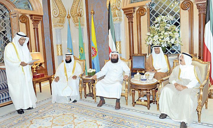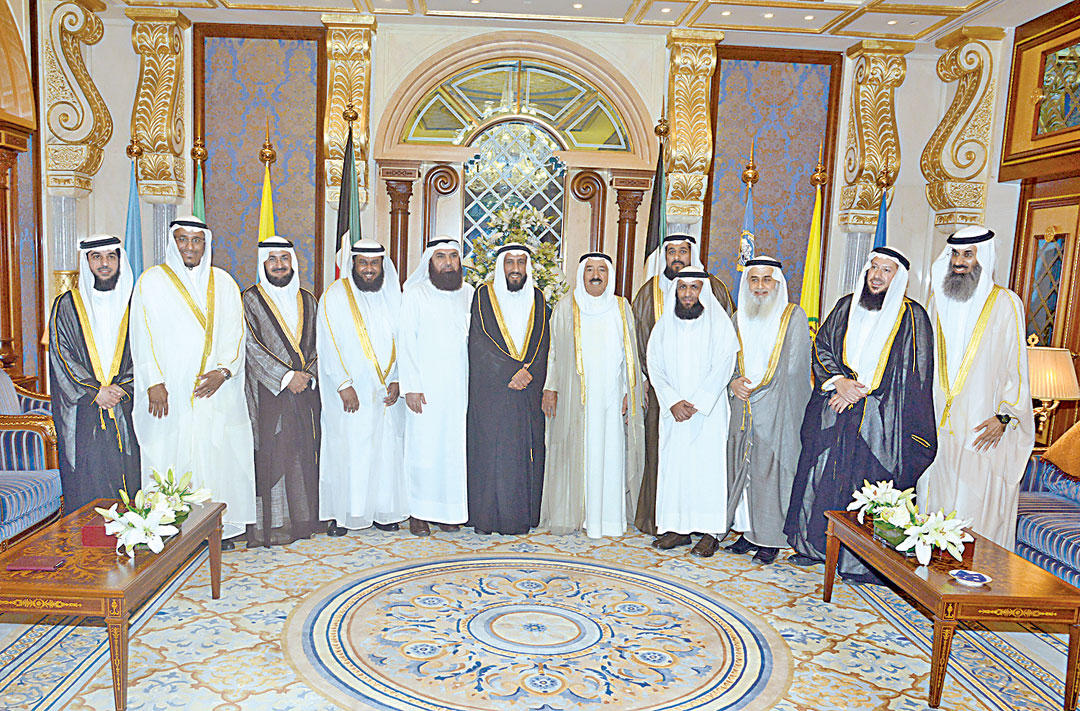استقبل سمو أمير البلاد الشيخ صباح الأحمد بقصر بيان صباح أمس عددا من المواطنين، وقد أدلى بعضهم بتصريحات دعوا خلالها إلى التضامن الوطني في مواجهة التطورات التي تمر بها البلاد.وفي هذا السياق، قال المهندس نصار العبدالجليل "إن هذه الزيارة قام بها وفد من الدكاترة والمهندسين والخطباء والدعاة والكتاب والإعلاميين وشباب الدعوة السلفية في شتى مناطق الكويت، وقد جئنا لنتشرف بزيارة سمو أمير البلاد، ولنؤكد في هذه الظروف وهذه الفتنة التي تحدث في الكويت، الالتفاف حول سموه، ونؤكد كذلك ان الشريعة الاسلامية والدعوة السلفية كانتا دائما صمام الأمان للكويت، خاصة أثناء الغزو العراقي الغاشم".