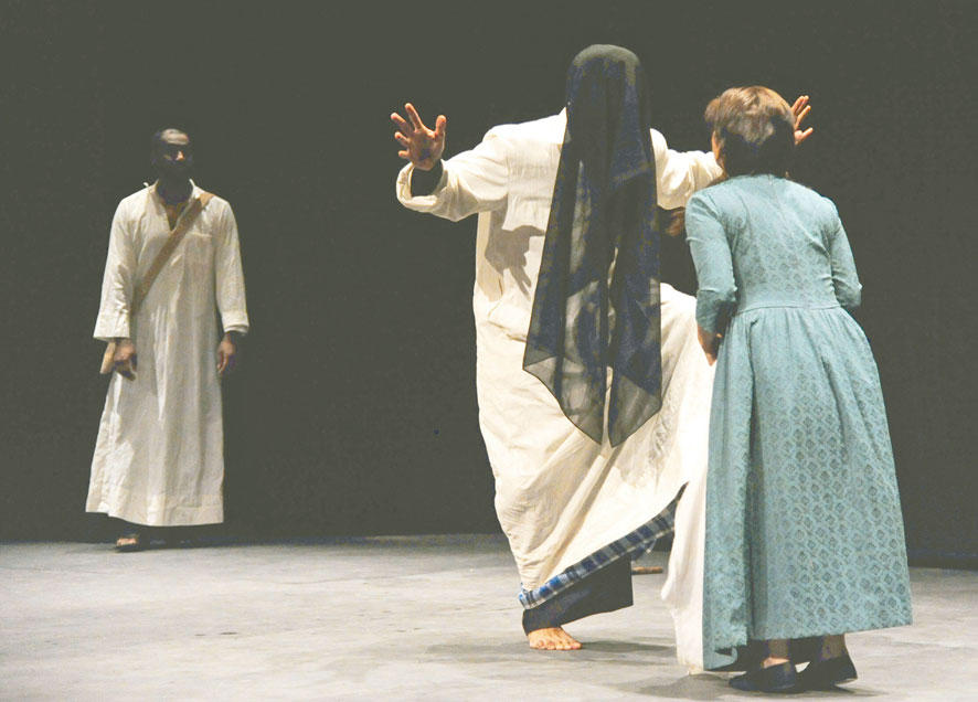 استغل المخرج عبدالمحسن القفاص فضاء المسرح بسينوغرافيا بصرية معبرة وموفقة، مقدماً معادلة إيقاعية لعناصر العرض المسرحي.