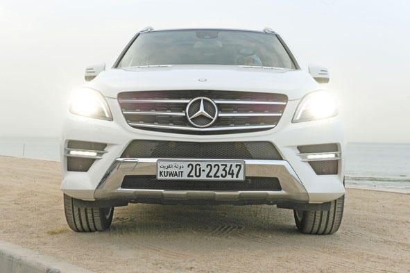 بلون جديد كليا.عادة ما تقيم أعلى المواصفات بالملكية، نظرا لعلو المكانة الاجتماعية لهذا المنصب، وكذلك المحركات والسيارات لها لغة مماثلة للعالم الاجتماعي، تصنف من خلالها، وللنخبة منها عنوان ومرتبة بلا شك، في ظل وجود ملايين السيارات."الجريدة" تسلط الضوء على جديد فئة M من مرسيدس – بنز لعام 2013، التي يمكن وصفها وبجدارة الوحش الملكي الالماني، والتي جمعت بين لوني الصالون والرياضي، فضلا عن خروجها بنظام دفع رباعي جبار، لتحل أهلا وسهلا في رحاب معرض الوكيل الحصري لعلامة مرسيدس – بنز الكويت، شركة عبدالرحمن البشر وزيد الكاظمي.بدوره، علق المدير العام لشركة عبدالرحمن البشر وزيد الكاظمي مايكل رويله قائلا: "إن مركبة مرسيدس – بنز الفئة M الجديدة تقدم مستوى عاليا من الراحة والفخامة، مع حلول ديناميكية فعالة وقدرات هائلة للقيادة على الطرق الوعرة، وتتميز مركبة مرسيدس – بنز الفئة M القياسية الجديدة لمنطقة الخليج بمميزات متنوعة، لم تكن متاحة في موديلات سابقة، أو كان على العميل أن يدفع أكثر ليحظى بتلك الاضافات".وبين ان التجهيز القياسي لمركبة ML 350 يتضمن باقة AMG مع عجلات 21 انشا وسقف بانوراما واضاءة داخلية خاصة بثلاثة الوان وأضواء نهارية وباب خلفي مميز مع نظام المساعد الفعال للركن وباقة الحفاظ على المسار مع حامل أكواب حراري، أما مركبة ML500 فتتضمن في تجهيزها القياسي نظام المساعد الفعال للركن وفتحة سقف بانوراما منزلقة وعتبات أسفل الابواب، وباقة AMG الرياضية بعجلات 21 انشا، ونظام تعليق هوائيا ونظام الاستعمال المتصل بالانترنت وباقة الذاكرة.ولفت الى ان محرك M الجديد أكثر قوة، حيث تمت زيادة الطاقة المنتجة بنسبة (12.5 في المئة) عن سابقاتها من 200 كيلو واط (272 حصانا) إلى 225 كيلو واط (306 أحصنة)، وأيضا تمت زيادة عزم الدوران بنسبة (5.7 في المئة) ليصل أقصاه عند 370 نيوتن متر (350 نيوتن متر في سابقاتها)، وأصبح مدى السرعة في المحرك 5250 لفة/دقيقة، الذي كان قبلاً 3500 لفة/دقيقة، هذا بالتوازي مع زيادة القوة حيث قام مهندسو مرسيدس – بنز بتحقيق تخفيض مؤثر في استهلاك الوقود.وذكر انه قد تم خفض معدل NEDC لاستهلاك الوقود بنسبة 25 في المئة، أما محرك البنزين ذو الستة اسطوانات في مركبة ML 350 4MATIC BlueEFFICIENCY فيقوم بتخفيض استهلاك الوقود 8.5 لترات لكل 100 كلم، ليكون المحرك الأكثر اقتصادا في استهلاك الوقود في فئتها، ويجمع الموديل بين أرقام استهلاك ممتازة وكفاءة ديناميكية، ليكون التسارع من الثبات إلى سرعة 100 كلم/ساعة في 7.6 ثوان بسرعة قصوى تصل إلى 240 كلم/ساعة.داخلية... خيال التصميم الداخلي الرحب والمبهج يقدم اتساعا ملحوظا على الجوانب مقارنة بسابقاتها (مساحة أوسع بمقدار 34 ملم في الأمام و25 ملم في الخلف)، ما يعزز الرحابة داخل المركبة، إضافة إلى لوحة أجهزة القياس التي تخطف العيون، حيث تتضمن زينة واسعة تتماشى مع حلية الأبواب، ما يزيد الانسجام بين اجزاء التصميم داخل المركبة.أما المقاعد فقد تم تصميمها لتعزز مفهوم الراحة للركاب خلال الرحلات الطويلة، مع الدعم الجانبي بأعلى مستوى، وجميع خيارات الضبط يمكن التحكم فيها كهربائيا من خلال ضغظة زر، ويحمل التصميم الداخلي مزايا جديدة لمساند الظهر للكراسي الخلفية، حيث يمكن ضبطها بميل وزيادة سعة الحمولة في الخلف، ويمكن طي الكراسي ووضعها خلف المقاعد الأمامية لزيادة سعة التحميل الطولي، لتصل إلى 2010 لترات حتى حدود سقف المركبة، وهو رقم قياسي في هذا القطاع.وتأتي المدللة بتجهيز قياسي بنظام صوتيات 20 CD الذي يشتمل على راديو بمبدل مزدوج وشاشة عرض ملونة بقطر 14.7 سم، إضافة إلى مشغل إسطوانات لصيغ MP3 وWMA وAAC مع وصلة USB للوسائط الصوتية، وعرض لصورة السي دي (في حالة حفظها على الحافظة المتوسطة)، وايضا يتضمن التجهيز مدخل AUX-IN، وسط مسند الذراع ولوحة مفاتيح لتلفون، أما ميزة البلوتوث فتسمح أيضا بالتحدث الحر على التلفون وتشغيل ملفات صوتية.أما نظام البيان والاستعمال COMAND ذو الوسائط المتعددة والمتصل بالانترنت فهو مزود بشاشة عرض ملون