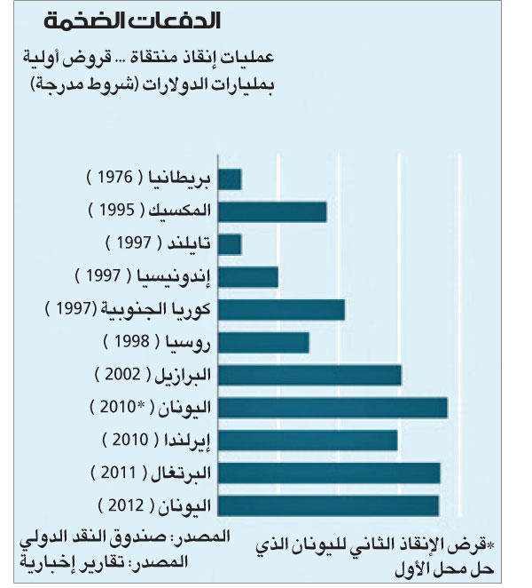 كان من الصعب في سنة 2006 رؤية دور لصندوق النقد الدولي وذلك أن عقداً كاملاً من الاستقرار الذي شهده العالم كان هذا يعني هبوطاً سريعاً في عمليات الإقراض التي ينفذها الصندوق. علاوة على ذلك، فإن صندوق النقد الدولي، الذي سيعقد اجتماعاته السنوية في طوكيو خلال الشهر الجاري، قد تعهد حتى الآن بتقديم 103 مليارات دولار إلى كل من اليونان وايرلندا والبرتغال.ويفوق هذا المبلغ إلى حد بعيد ما قدمه الصندوق إبان الأزمة الآسيوية التي اندلعت في أواخر التسعينيات من القرن الماضي عندما بلغ حجم القروض التي قدمها آنذاك 35 مليار دولار، ومع احتمال تقديم قرض إنقاذ إلى إسبانيا، فإن الأرقام قد ترتفع من جديد.وتدخل الدول الأعضاء في الصندوق البالغ عددها 188 ضمن المساهمين المباشرين فيه، ويشعر العديد منها بقلق لأنه يقوم بإقراض واسع إلى الدول الأوروبية القادرة تماماً على العناية وعلاج مشكلاتها بنفسها، ولأن هناك تعارضاً، إذ إن الدول الأوروبية تتمتع بقدرة تصويتية داخل المؤسسة الدولية غير متناسبة مع مساهماتها في الصندوق... فهل هذا الانتقاد صحيحاً؟تهمة غير عادلةبكل تأكيد فقد أصبح صندوق النقد الدولي متداخلاً ومتشابكاً مع المؤسسات الأوروبية، وذلك بسبب أزمة اليورو المعروفة، ويعتبر الصندوق الشريك الأصغر في ثلاثي المؤسسات "الترويكا" العاملة والمشتركة في كل عملية من عمليات الإنقاذ المالي داخل أوروبا، أما العضوان الآخران لهذا الثلاثي فهما البنك المركزي الأوروبي والمفوضية الأوروبية.ويجيء النصيب الأكبر من الدعم المالي عن طريق دول منطقة اليورو، غير أننا يمكننا القول إن مستوى إقراض صندوق النقد الدولي لايزال متميزاً وبارزاً، فقد تعهد الصندوق بتقديم 30 مليار يورو (37 مليار دولار) إلى اليونان في شهر مايو من سنة 2010، وأعقب ذلك وخلال سنة واحدة فقط تقديم قروض ضخمة إلى ايرلندا والبرتغال، وكل واحد من هذه القروض ينافس مستوى القروض القياسية التي سبق أن قدمها صندوق النقد الدولي في 2002 إلى البرازيل بمبلغ 30 مليار دولار.غير أن الاتهام الذي يتعرض له صندوق النقد الدولي بأنه يوزع الأموال من دون حساب ليس عادلاً ولا منصفاً، وقد خالفت كريستين لاغارد رئيسة الصندوق وعود رئيسه السابق دومينيك ستراوس، التي وعد فيها بأن يقدم الصندوق ثلث المبالغ النقدية اللازمة لإنقاذ منطقة اليورو، وعملت لاغارد بجهد بالغ من أجل الحصول على تمويل جديد لصندوق النقد الدولي من الدول الغنية الأعضاء مثل الصين، ويصل الدعم المتعلق باليونان وايرلندا والبرتغال إلى 10 في المئة تقريباً من قدرات الإقراض الإجمالية للصندوق البالغة حوالي تريليون دولار، وقد تميز سلوك الصندوق في مجال الدفعات النقدية بالحكمة والحذر بشكل نسبي.تطور إيرلنديوتعتبر الانتقادات المتعلقة بنوعية نصائح وإرشادات صندوق النقد الدولي أكثر أهمية إلى حد كبير، كما أن سجل الصندوق في هذا المجال مختلط بشكل جلي، ولنأخذ على سبيل المثال ايرلندا التي ترجع أسباب أزمتها المالية إلى إخفاق القطاع المصرفي الذي أفضى إلى تداعيات على التمويل العام، وقد ارتفع عائد السندات الايرلندية بشدة في أواخر سنة 2010، واستهدفت عملية إنقاذ الترويكا بقيمة 68 مليار يورو، شراء الوقت لدبلن بغية اجتناب ضغوط أسواق الدين. وبعد مرور أقل من سنتين تبدو الأحوال أفضل كثيراً، وقد جرى تحجيم القطاع المصرفي الذي كان يمتلك أصولاً في فترات الذروة تعادل 5 أمثال الناتج المحلي الإجمالي السنوي في ايرلندا، كما تمت إعادة رسملته. وفي الوقت ذاته حدثت عمليات مضنية من التحسينات في الميزانية الايرلندية بقيمة 15 مليار يورو، ويراجع صندوق النقد الدولي الأوضاع في البلاد بصفة دورية من أجل التأكد من حسن سير الأمور، وقد تمكنت ايرلندا من تلبية الأهداف المحددة لها وعاود الاقتصاد النمو من جديد، كما تمكنت الحكومة من إصدار سندات جديدة في شهر يوليو الماضي. وهذه حالة تستدعي الدراسة بشأن كيفية إقراض صندوق النقد الدولي للدول التي تحتاج إلى دعم مالي. معضلة اليو