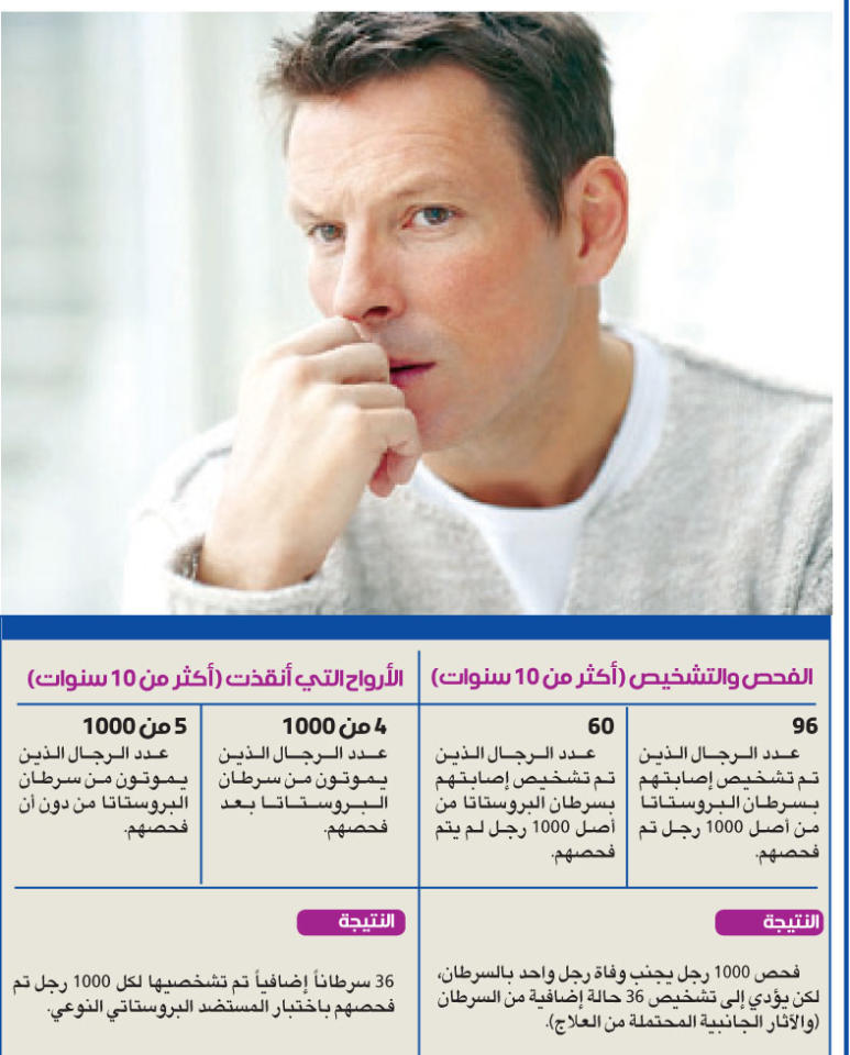 حاليًا، لا يوافق الخبراء كلهم على إجابات لهذه الأسئلة. ووسط حالة من عدم اليقين، أفضل استراتيجية يمكن اتباعها لاتخاذ القرار هي الاطلاع على المعلومات المتوافرة والسير على ضوئها.الدكتور مارك غارنك خبير في سرطان البروستاتا وأستاذ عيادة طبي في جامعة هارفارد، يقول في هذا المجال: «قبل اتخاذ أي خيار نهائي حول اختبارات PSA، يحتاج الرجال أولاً إلى فهم طبيعة هذا الاختبار قبل حصولهم على النتائج وبعدها، سواء كانت أنباء جيدة أو سيئة. عندئذ فحسب يمكنهم إجراء مناقشة مستفيضة مع أطبائهم لتحديد ما إذا كان الاختبار في مصلحتهم».ما هو اختبار PSA؟يقيس هذا الاختبار مستوى المستضد البروستاتي النوعي في الدم. ابتكره الباحثون في الثمانينيات لرصد تكرار سرطان البروستاتا أو تطوره. في ذلك الوقت، غالبًا ما كان يتم تشخيص سرطان البروستاتا في مرحلة متقدمة، عندما يتسبب السرطان بأعراض مثل آلام الحوض أو الانزعاج، أو صعوبة التبول، أو دم في البول. هكذا بدأ الأطباء باستخدام اختبار PSA في محاولة للكشف عن سرطان البروستاتا المخفي.ولكن بعض القيود يعيق اختبار PSA. في الواقع، ليس صحيحًا أنه اختبار نوعي لمرض السرطان. قد يشير ارتفاع مستوى المستضد البروستاتي النوعي إلى سرطان البروستاتا، لكنه قد يشير أيضًا إلى مسبب غير سرطاني، مثل تضخم البروستاتا أو التهابها. نتيجة لذلك، لا يمكن للمستضد البروستاتي النوعي وحده أن يحدد ما إذا كان الرجل مصابًا بالسرطان، ولا يمكن أن يؤكد أن جسمه خالٍ من السرطان. وحدها الخزعة تشخِّص سرطان البروستاتا.تشمل السرطانات التي اكتشفت نتيجة لاختبار PSA والخزعة الأورام «العدوانية» السريعة النمو القاتلة، كذلك الأورام «الكسولة» البطيئة النمو التي لا تسبب أي أعراض أو تقصر عمر الرجل. وفي ظل الافتقار إلى طريقة يمكن الاعتماد عليها لتحديد الإصابة بسرطان خطير حقًا، عادة ما يختار الرجال العلاج الفوري.في عام 2012، أوصت فرقة مهمة الخدمات الوقائية للولايات المتحدة رسميًا بأن يعيد الرجال والأطباء التفكير في اختبار PSA. بعد مراجعة بيانات أفضل البحوث المتاحة، خلص الفريق إلى أن هذا الاختبار يقلل بنسبة ضئيلة عدد الرجال الذين يموتون بسبب سرطان البروستاتا.لماذا قد يضر بالرجل؟بهدف الفهم الكامل لإيجابيات اختبار PSA وسلبياته، عليك أن تفكر في ما بعد الاختبار نفسه. فالاختبار مجرد خطوة أولى في عملية الكشف عن سرطان البروستاتا وتشخيصه وعلاجه. وقد تواجه مشاكل محتملة كثيرة لاحقًا.إذا كان مستوى المستضد البروستاتي النوعي مرتفعًا لديك، قد يوصي الطبيب بإجراء خزعة. في ثلث الحالات تقريبًا من الرجال، تسبب الخزعة النزيف أو العرقلة البولية أو العدوى، ويتم إدخال رجل من بين 100 رجل إلى المستشفى. بعد إجراء الخزعة، قد تتمثل الخطوة التالية بالعلاج. وتشمل مخاطر العلاج العجز الجنسي وسلس البول (في 20 إلى 30 في المئة من الرجال)، ومشاكل الأمعاء.وبما أن اختبار PSA يؤدي غالبًا إلى الخزعة والمعالجة والمخاطر المرتبطة بها، فهو ليس «مجرد اختبار». إنه بوابة إلى نتائج لا يمكن التنبؤ بها، لذا يشكل اتخاذ هذا القرار مسألة خطيرة. يقول الدكتور غارنك: «نفتح الباب أمام مسار طويل ومكلف، ربما يكون مؤلمًا ولا يعود بأي نتيجة أو فائدة طويلة الأجل، من وجهة نظر إحصائية».من يستفيد من هذا الاختبار؟ لا ينصح الأطباء بعدم إجراء اختبار PSA، فهو لا يزال يوفر معلومات قيمة قد تساعدك على اتخاذ القرارات الطبية السليمة. اختبار المستضد البروستاتي النوعي نقطة قياس، لكنه ليس نقطة اتخاذ القرار.فضلاً عن ذلك، توصية فرقة مهمة الخدمات الوقائية للولايات المتحدة هي مجرد توصية. أما القرار النهائي فيعود إليك وإلى طبيبك. يوفر اختبار PSA الفائدة الأكثر احتمالاً للرجال المعرضين لخطر كبير، ونقدم لك في ما يلي عوامل الخطر الرئيسة:• العمر: يرتفع خطر الإصابة بسرطان البروستاتا مع التقدم في السن. يتم تشخيص إصابة معظم الرجال بسرطان البروستاتا في السبعين من عمرهم.• التاريخ العائلي: تتعرض ل