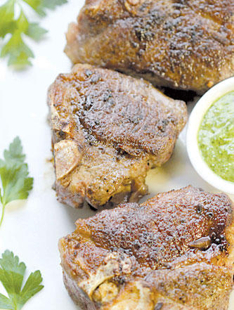 اختاري خليط توابل يحتوي على برش الليمون الحامض والبهار الأسود يكون خالياً من الملح ويتلاءم مع لحم الضأن.المقاديرالصلصة- كوبان من أوراق البقدونس الطازجة.- فص ثوم مقشر.- ثلث كوب من الفستق الحلبي المقشر.- ثلث كوب من زيت الزيتون.- 4 ملاعق كبيرة من جبنة بارميزان المبروشة.- ماء قدر الحاجة.- قليل من الملح والبهار الأسود المطحون الطازج.شرائح الضأن- 8 قطع من لحم الضأن يُفضل أن تكون من «الريش». - قليل من الملح والبهار الأسود المطحون الطازج.- ملعقة كبيرة من زيت الزيتون.الطريقةالصلصة- امزجي جيداً في خلاط كهربائي أوراق البقدونس مع الثوم والفستق الحلبي.- أضيفي زيت الزيتون تدريجاً والخلاط يعمل، ولا تتوقفي عن المزج إلى أن تحصلي على خليط متجانس.- أضيفي الجبنة وعاودي الخلط. أضيفي إلى الخليط الماء تدريجاً إلى أن تحصلي على مزيج شبيه بالخردل.- طيبي الخليط بالبهار وضعيه جانباً.اللحم- أخرجي اللحم من البراد قبل نصف ساعة على الأقل قبل الطهو.- تخلصي من الدهن الزائد. جفيفي قطع اللحم بواسطة محارم ورقية، وطيبي جوانبها كافة بالملح والبهار أو أي خليط توابل تختارينه.- حمي الزيت جيداً في مقلاة كبيرة على حرارة متوسطة، ثم اقلي شرائح اللحم إلى أن تحمر جيداً، أي نحو 4 إلى 5 دقائق لكل قطعة.- انقلي الشرائح إلى طبق ولفيها بورق ألومنيوم كي تبقى ساخنة إلى أن تنتهي من قلي قطع اللحم كافة.- قدمي الشرائح بعد ذلك مع قليل مع الصلصة فوقها إو إلى جانبها.تحتوي كل قطعتي لحم مع الصلصة على: 392 سعرة حرارية (71% منها من الدهون)، 31 غراماً من الدهون (6 غرامات من الدهون المشبعة)، 6 غرامات من النشويات، 23 غراماً من البروتين، 294 مليغراماً من الصوديوم، 74 مليغراماً من الكولسترول، وغرامان من الألياف.