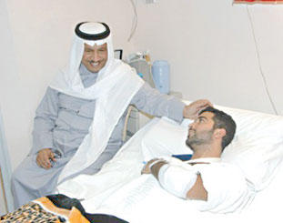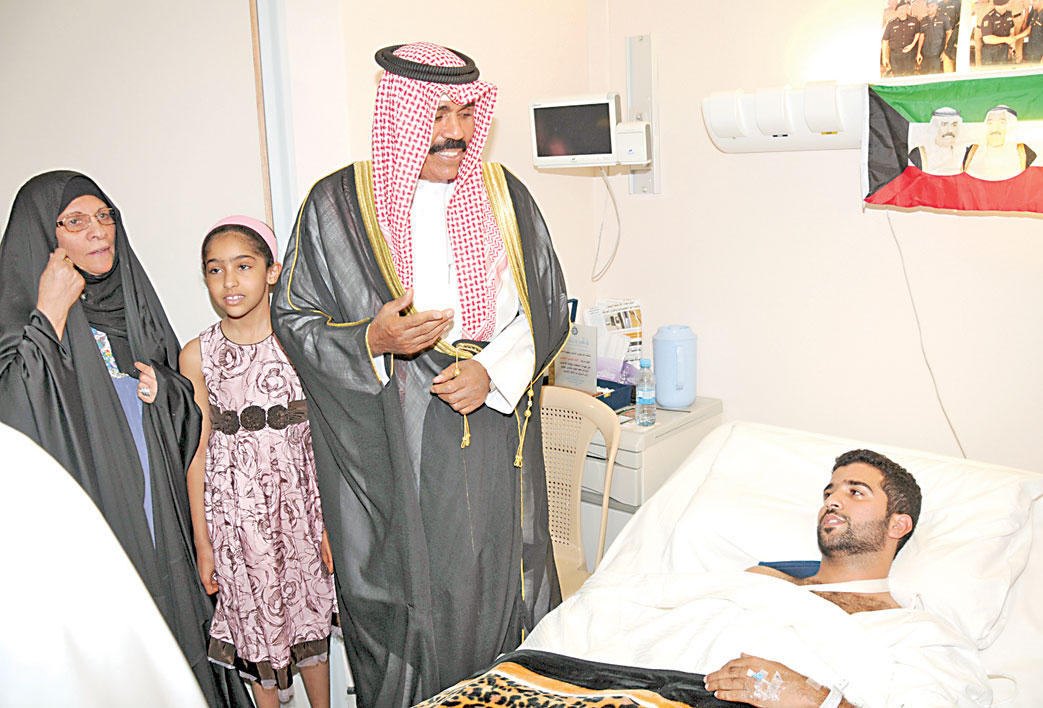 • المبارك: الدولة مستعدة لتحمل نفقات علاج المصاب في الداخل أو الخارج • سموهما زارا المصاب وكيل عريف أحمد العيسى خلال الأحداث الأمنية الأخيرة