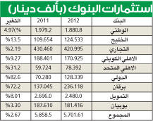 5.7 مليارات دينار قيمة استثمارات البنوك المحلية
