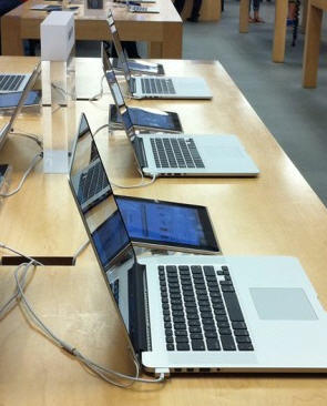 كلما دخلت محلات "أبل" تجدها نظيفة ومرتبة ومنسقة، وتجد شاشات أجهزة الكمبيوتر المحمولة واللوحية مفتوحة بشكل مائل، حيث يتأكد الموظفون بشكل دائم من شاشات الأجهزة مائلة بـ70 درجة، حيث إن عرضها بذلك الشكل يثير فضول الزبون.