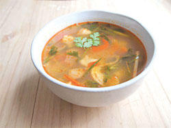 حساء «توم يوم» (4 أشخاص)لم يحن الوقت بعد لتوضيب آلة الهرس ونسيان أطباق الحساء، فكل ما نحتاج إليه كي نخرج من حالة السبات التي يتسبّب بها الشتاء ونتحضَّر للصيف هو طبق حساء «توم يوم» الشهي والغني بالنكهات والطعمات اللذيذة.يتميز حساء «توم يوم» بطعمه الحار وبنكهاته الغنية القادرة على خرق جدار حتى أكثر حالات الزكام تعقيداًَ. يعني اسمه الحساء الساخن والحامض، ويمكنك عند إعداده استعمال أنواع اللحوم كافة، بدءاً بلحم البقر ووصولاً إلى لحم السلطعون، غالباً يُستخدم الروبيان. بحسب مؤلف كتب الطبخ فاتشارين بهوميشيتر، تكمن ميزة هذا الحساء في أنه يمكن تعديل وصفته الأساسية وفي أنه سريع التحضير ما إن توافرت مكوّناته كافة.مرقاتلا شك في أن أهم قسم في أي حساء يتمثل في المرق، ويبدو أنه لا يوجد إجماع على طبيعة المرق الواجب استخدامه لإعداد حساء «توم يوم». يستخدم خبير الطعام التايلاندي دايفيد تومبسون مرق الدجاج في الوصفة الواردة في كتابهThai Street Food، في حين تفضّل ليندسي باريهام استخدام مرق السمك في الوصفة «الأصلية» الواردة في كتابها A Celebration of Soup. في المقابل، تعتمد الكاتبة الغذائية ميمي آي مقاربة أكثر بساطة تقوم على استخدام مجرّد مياه، وتحبّذ أليغرا ماك ايفيدي المزج بين المياه وحليب جوز الهند، في حين تستخدم روزماري بريسيندين مرق الروبيان لإعداد حساء «توم يوم» الواردة طريقته في موسوعتها المطبخية South-East Asian Food.ضعي المنكهات المطلوبة فيصبح حساء «توم يوم» المعدّ وفقاً لوصفة ميمي لذيذاً للغاية. بإمكانك استبدال بلح البحر الوارد في وصفتها بالروبيان. صحيح أن المرق الذي ستحصلين عليه سيكون خفيفاً إلا أنه لذيذ للغاية ولا يستغرق إعداده العشر دقائق.تتضمّن وصفة دايفيد تومبسون مزيداً من المكوّنات بما فيها جذور الكزبرة والكرّاث، والغرض منهما إخفاء مذاق الدجاج في الحساء.تستخدم كل من ليندسي باريهام وروزماري بريسيندين قشرة الروبيان لإضفاء نكهة إلى الحساء. تطهو باريهام القشرة في مرق السمك، في حين تحبّذ بريسيندين استعمال المياه فحسب. ذاك أن مرق السمك أو مرق المأكولات البحرية يتميّز بطعم قوي للغاية يغلب على نكهة الجوز التي تتمتّع بها القشريات.استعمال حليب جوز الهند وفقاً لوصفة أليغرا لإعداد حساء «توم يوم» النباتي، مخيب للأمال بعض الشيء. إذ يشعر المرء أن الحساء يفتقر إلى الطعم وكأن من أعدّه نسي أن يضيف إليه إحدى المكوّنات. حتى لو أضيف إلى الحساء المزيد من عصير الليمون، وكمية من صلصة السمك، تشعر بأن هذا الحساء النباتي يفتقر إلى المذاق الرائع الذي يتميز به الحساء المعدّ وفقاً للوصفات المذكورة أعلاه.منكّهاتيُعدُّ كل من أليغرا وروزماري بريسيندين معجون التوابل لإضفاء نكهة إلى حساء «توم يوم». يتألف معجون التوابل الذي تعدّه أليغرا من الثوم، وعشبة الليمون، والزنجبيل، وأوراق الليمون، والكزبرة، والفلفل الحار والكرّاث. يُطهى المزيج لفترة قصيرة كي تمتزج النكهات ببعضها البعض، ثم يذوّب خليط التوابل في حليب جوز الهند والماء. يعطي معجون التوابل هذا الحساء لوناً أخضر جميلاً إلا أنه لا يضفي إلى طعمه سوى الشيء القليل.في المقابل، تضيف بريسيدين إلى الحساء معجون «الفلفل الحار» الذي تقول إنه متوافر في المتاجر المتخصصة ببيع الأطعمة الآسيوية.بعد تقطيع الثوم والكراث، قليهما مع خمس حبات فلفل أحمر مجفف ثم امزجي الخليط مع معجون الروبيان المنكه ومع قطع الروبيان المجفف، ثم أضيفي إلى المعجون في النهاية ملعقتين كبيرتين من سكر النخيل وثلاث ملاعق من ماء التمر الهندي. لحسن الحظ، تقول الوصفة إنه يمكن الاحتفاظ بهذا المعجون في البراد لفترة من الوقت. صحيح أن مذاقه لذيذ ومقرمش وغني وحلو، لكن هذه النكهات نفسها تفسد نضارة الأنواع الأخرى من الحساء: يفضل تناول هذا المعجون مع المقالي، أو مع الرز المطبوخ على البخار.مكوّنات أخرىيبدو أن مكوّنات حساء «توم يوم» تقتصر على عشبة الليمون وأوراق الليمون الحامض وعصيره والفلفل الحار، حتى إنه
