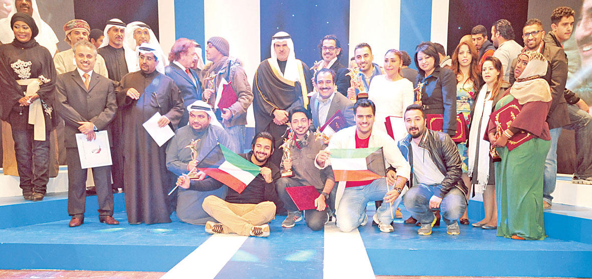 واضاف الحمود أن ما قدمه الشباب من تجارب ابداعية يتماشى مع التطور الثقافي، ويعبر عن مدى النضج الحقيقي لقدرات هؤلاء الشباب، الذين يعول عليهم كثيرا في مواصلة مسيرة العمل الثقافي والنهوض به، لذا فهم يستحقون الدعم والإشادة والتشجيع لما يقومون به من جهود حثيثة وتجارب ابداعية خلاقة في الفنون والثقافة.بعد ذلك قدم عريفا الحفل تحية للفنان القدير سعد الفرج على فوزه بجائزة التمثيل بمهرجان القاهرة السينمائي الدولي ومخرج فيلم «تورا بورا» وليد العوضي.وفي مبادرة إنسانية رائعة من الكاتبة عواطف البدر، قامت بتكريم أحلام عباس التي تحدت الإعاقة والكرسي وأصبحت تمشي على رجليها، مقدمة لها ثوبا كويتيا. وجاء دور رئيس لجنة التحكيم د. خليفة الهاجري لإلقاء كلمة التحكيم والتوصيات، وهي: تشكيل لجنة مختصة لاستقاء العروض المقدمة للمهرجان، ضرورة استعانة الفرق بالمسرحيين الكبار للإشراف أو أخذ الاستشارة في اعمالهم، أهمية سلامة اللغة العربية، تقديم العروض على أكثر من دار، تخصيص جائزة للمكياج، تخصيص جائزة للجنة التحكيم الخاصة.بعدها صعد الوزير، وأمين عام المجلس الوطني م. علي اليوحة، ومدير المهرجان صالح الحمر، ولجنة التحكيم، لتوزيع الجوائز وعددها 13 جائزة رسمية من إدارة المهرجان، ومعها الجوائز الممنوحة من جهات مسرحية، وهي جائزة كنعان حمد، المقدمة من فرقة المسرح العربي لأفضل ممثل دور أول، وجائزة غانم الصالح من «ستيج غروب» لأفضل ممثلة دور أول، وجائزة منصور المنصور من فرقة مسرح الخليج العربي لأفضل مخرج، وجائزة أفضل ممثل وممثلة واعدين من جريدة الأنباء.الفائزونأفضل عرض مسرحي متكامل: على الطريق – مسرح الشباب.أفضل مخرج: خالد أمين - «على الطريق». أفضل مؤلف: فاطمة المسلم «نرفانا» – مسرح الخليج العربي.أفضل ممثل دور أول: عصام الكاظمي - «على الطريق».أفضل ممثلة دور أول: أحلام حسن - «على الطريق».أفضل ممثل دور ثان: عبدالله التركماني - «نرفانا».أفضل ممثلة دور ثان: سماء العجمي «ريتويت» – المسرح الجامعي.أفضل ممثل واعد: فهد الرويشد «لو» – المسرح الشعبي.أفضل ممثلة واعدة: راوية الربيعة «نرفانا».أفضل ديكور: د. نبيل الفيلكاوي «لو».أفضل إضاءة: عبدالله الحبيل – على الطريق.أفضل مؤثرات صوتية: عبدالحميد الصقر – على الطريق.أفضل أزياء: ابتسام الحمادي – على الطريق.