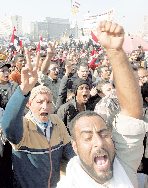 وبينما أعلنت الجمعية العمومية لقضاة مجلس الدولة أمس رفضها للإعلان الدستوري، تنظر المحكمة الدستورية العليا غداً دعويين، الأولى حل مجلس الشورى (الغرفة الثانية للبرلمان) ومنازعة التنفيذ المقامة من محامين ضد الجمعية التأسيسية، والثانية لهيئة مفوضي المحكمة لتحضير منازعة أقامها محام لإلغاء الإعلان الدستوري الأخير، وسط توقعات بحل "التأسيسية" في إطار الحرب المعلنة بين مؤسسة الرئاسة والسلطة القضائية الغاضبة التي يواصل أعضاؤها اعتصامهم بمقر ناديهم لليوم الرابع على التوالي حتى إسقاط الإعلان.وقال المتحدث الرسمي لجبهة الإنقاذ الوطني، التي تضم القوى المدنية وأحزابها، حسين عبدالغني لـ"الجريدة" إن "الجبهة ترفض الدستور الذي أنتجته الجمعية لأنها باطلة بحكم القضاء ومطعون في شرعيتها"، معتبراً التصويت على الدستور ليلاً مهيناً للشعب.واتهم لسان حال جبهة الإنقاذ الوطني الرئيس مرسي بالمراوغة من خلال الإعلان الدستوري الكارثي الذي لم يكن في الحقيقة إلا قنبلة دخان لكي يمرر الدستور المعيب، مضيفا: "عازمون على استكمال أهداف الثورة أو الموت شهداء، وسنلجأ إلى وسائل التصعيد السلمية المدنية كالتظاهر والاعتصام والعصيان المدني".وتعرض الرئيس مرسي لموقف بالغ الحرج، أثناء تأديته لصلاة الجمعة بأحد المساجد بحي التجمع الخامس شرق القاهرة، فقد هتف المصلون "يسقط يسقط حكم المرشد"، رداً على خطبة إمام المسجد الذي أعلن تأييده للإعلان الدستوري ومهاجمته القضاة، إلا أن مرسي تدخل لاستيعاب الموقف بحديثه لجموع المصلين وترديده معهم "يسقط حكم الاستبداد"، مؤكدا أنه يرحب بالحوار والرأي الآخر وأن التعبير عن الرأي حق لكل مواطن.حلم الشهيد ووسط مخاوف من أفول الديمقراطية الوليدة، احتشد مئات الآلاف في ميدان التحرير بوسط القاهرة وعدد من الميادين الكبرى في المحافظات لإحياء مليونية "حلم الشهيد" وللتعبير عن تمسكهم برفض قرارات مرسي والإعلان الصادر في 22 من الشهر المنصرم.وارتفعت حدة لهجة الرفض الشعبي لمرسي بعد حديثه للتلفزيون المصري مساء أمس الأول، الذي جاء مخيبا للآمال، وفقا لمراقبين، مع عدم تطرقه إلى أي من القضايا التي تشغل الرأي العام، ودون الكشف عما سماه "مؤامرة ضده". وصعد المتظاهرون في ميدان التحرير هتافاتهم لتصبح "الشعب يريد إسقاط النظام" و"مرسي لازم يمشي" و"مرسي زي مبارك".وانطلقت العديد من المسيرات الحاشدة أمس عقب صلاة الجمعة تجاه ميدان التحرير من الأحياء القريبة من قلب القاهرة، وقاد التظاهرات رموز التيارات المدنية، وعلى رأسهم رئيس حزب التحرير محمد البرادعي ومؤسس التيار الشعبي حمدين صباحي. والتقت المسيرات في ميدان التحرير الذي امتلأ عن آخره، ما يمثل نجاحا للقوى المدنية التي استطاعت الحشد للمرة الثانية في أقل من أسبوع دون استعانة بالإسلاميين الذين فضلوا الاستمرار في التجهيز لمليونية "الشرعية والشريعة" اليوم بميدان "نهضة مصر" غير بعيد عن جامعة القاهرة بعد ضغوط مارسها حزب "النور" السلفي على جماعة "الإخوان المسلمين" لنقل المليونية من التحرير تجنبا لأي اشتباك مع المعتصمين حتى سقوط الإعلان الدستوري.تطمينات أمنيةإلى ذلك، وجه مصدر أمني رفيع المستوى رسالة طمأنة إلى الشعب أمس، بأن الأجهزة الأمنية لم ولن تكون أداة لقمع المتظاهرين. وقال لـ"الجريدة": "لن يكرر الأمن ما حدث مع الشعب خلال ثورة يناير، مهما حدث".