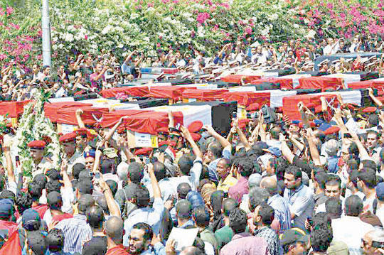 مرسي يغيب عن جنازة شهداء رفح والمشيعون يهتفون ضد الإخوان وحماس