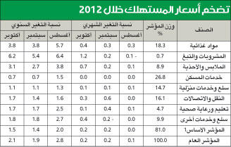 وبين أن مستوى أسعار الخدمات السكنية (الإيجارات في المقام الأول) ارتفع بنسبة 0.7 في المئة، دون تغير عن شهر سبتمبر، وقد كان مستوى التضخم المنخفض في هذا المكون، والذي يعد المكون الأكبر، مشكلا 27 في المئة من المؤشر العام، مصدرا للضغط على مؤشر أسعار المستهلك نحو الانخفاض.وتعتبر شريحة الخدمات السكنية المكون الفرعي الوحيد الذي سيتم تحديثه ربع سنوياً وليس شهرياً. ومع ذلك، فإن جمود الأسعار في هذه الشريحة يصل إلى ما هو أبعد من ذلك، فمستوى السعر ظل ثابتاً أو شبه ثابت خلال الـ11 شهرا الماضية. وأضاف ان أسعار الملابس والأحذية ارتفعت بنسبة 3.1 في المئة، مقارنة بنفس الفترة من العام الماضي، ومقارنة بنسبة الارتفاع في سبتمبر التي بلغت 2.7 في المئة، وقد نتجت هذه الزيادة إلى حد بعيد عن ارتفاع أسعار الملابس الجاهزة بنسبة 4.0 في المئة، مقارنة بنفس الفترة من العام الماضي.وعن القطاعات الأخرى قال التقرير ان معدل التضخم ظل في معظم الشرائح دون معدل 2 في المئة، فقد شهدت شريحة السلع والخدمات المنزلية احد أدنى نسب التضخم، حيث ارتفعت الاسعار بنسبة 1.1 في المئة فقط، مقارنة بنفس الفترة من العام الماضي.كما شهدت أسعار النقل والاتصالات ارتفاعا بنسبة 1.7 في المئة، مع ارتفاع اسعار السيارات الصالون بنسبة 2.0 في المئة، ولم تكن الأخيرة قد تغير مستواها في الـ14 شهراً الماضية حتى سبتمبر، وشهد القطاع التعليمي وقطاع الرعاية الصحية ارتفاعا مماثلا بنسبة 1.7 في المئة دون متوسط ارتفاعه البالغ 2.4 في المئة لهذه السنة حتى الآن.وأشار إلى انخفاض معدلات التضخم عن المعدلات المتوقعة في النصف الثاني من العام، نظرا لانخفاض تضخم أسعار المواد الغذائية إلى مستويات أقل مما كان متوقعاً، إضافة إلى معدلات التضخم المنخفضة في الشرائح الأخرى.وتابع: «نتوقع أن يصل متوسط معدل التضخم إلى 2.9 في المئة لسنة 2012 كلها. ورغم بعض الضغوط المحتملة نحو الارتفاع، مثل قوة الإنفاق الاستهلاكي وتقلب الأسعار العالمية للمواد الغذائية وأسعار الصرف، على سبيل المثال، فإننا نتوقع أن يظل التضخم مستقراً بصفة عامة خلال عام 2013 ليصل متوسطه إلى 3.5 في المئة».