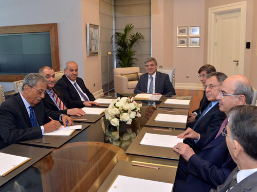 والتقى الوفد الذي رأسه محمد جاسم الصقر، وضم رئيس مجلس الأعيان الأردني طاهر المصري، ورئيس الوزراء العراقي الأسبق إياد علاوي، ورئيس وزراء لبنان الأسبق فؤاد السنيورة، والأمين العام الأسبق لجامعة الدول العربية عمرو موسى، مع الرئيس التركي عبدالله غول، ورئيس الوزراء رجب طيب أردوغان ووزير الخارجية داود أوغلو. وناقش الوفد مع أردوغان بشكل مطول الأوضاع العربية، وخصوصاً الأوضاع السائدة في كل من مصر وسورية، والدور الذي يمكن أن تلعبه تركيا، ولا سيما في مصر، لما لها من علاقات متينة مع مختلف الأطراف.وكان الوفد قد عقد اجتماعاً مع وزير الخارجية داود أوغلو تركز البحث خلاله على "إيجاد سبل لمواجهة وحل الأزمة في كل من سورية ومصر".وعقب الاجتماعات، قال الصقر إن تلك اللقاءات "كانت مطولة وعميقة بما يعكس اهتمام القيادات التركية بدور مراكز الأبحاث وصناعة ودعم القرار، وتفهمهم كذلك لتأثير المشاركين في الوفد وخبراتهم"، مؤكداً أنه "تم طرح أفكار قيمة ومقترحات جوهرية سنواصل تداولها مع أطراف أخرى لإيجاد حلول للأزمات الكبرى التي تشهدها المنطقة، أملاً في تطويقها وحماية منطقتنا والعالم من مخاطر قد تكون خطيرة جداً، وكذلك لوقف سفك الدماء الغالية التي نشهدها في أكثر من موقع عربي".