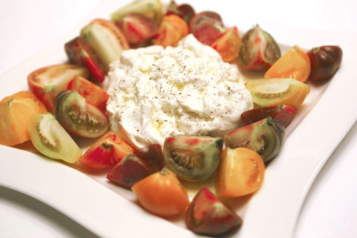 لا شك أن أفضل الوصفات تشمل طبقاً من شرائح الطماطم الناضجة (مع استعمال أنواع مختلفة للحصول على خليط من الأشكال والأحجام والألوان) حول كرة من جبنة البوراتا الإيطالية، ويجب إبقاؤها مفتوحة لتظهر الحشوة الهلامية اللذيذة. يمكن إضافة قليل من زيت الزيتون، أو ربما بعض الخل، مع رشّة من الملح الخشن والفلفل الطازج المطحون لنحصل على طبق سنحلم به بعد انتهاء موسم الطماطم بفترة طويلة.