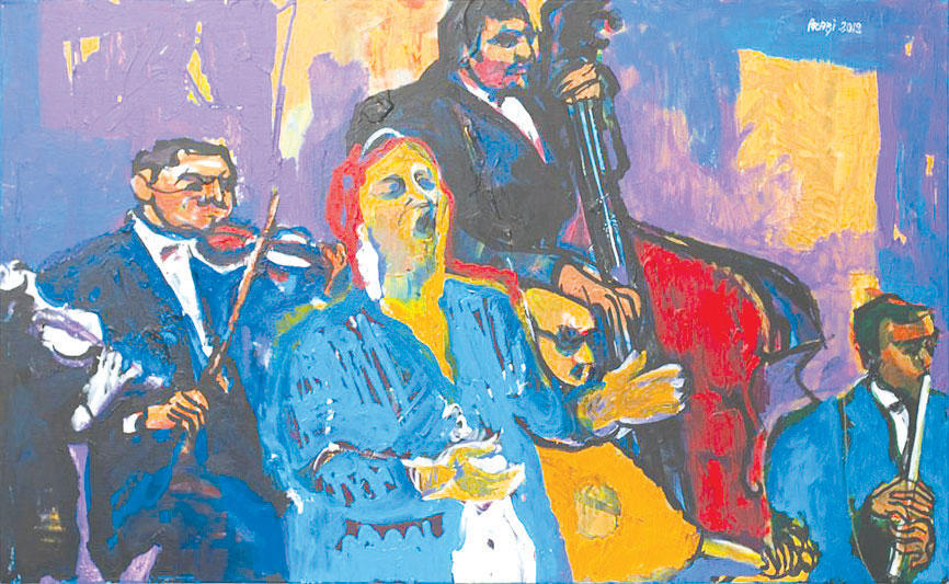إيقاعات لونية يرسم أسعد عرابي الحالة المسرحية الكلثومية التي يدوزن بها إيقاعاته الفنية اللونية. علاقات عناصره وفضاءاته وتلويناته مفتوحة على التأويلات كافة، يربطها تأكيده التقديمي في أن أم كلثوم كائن مسرحي وطقسي يرقص بالإشارات والتهاليل والابتهال الروحي والجسدي. يلتقط عرابي لحظة التجلي القصوى أو نشوة أم كلثوم الطربية، فتراه يركز على شد عنقها للأعلى مع حركة منطقة الذقن وإقفال جفونها كأنها في لحظة غرام مع صوتها، يلتقط وضعيتها في منتصف أدائها برأسها المنحني إلى الخلف وذراعيها المرتفعتين عالياً، فارضة ذاتها على الجمهور والمستمعين. تعبّر هذه الحالة عن وصولها إلى مرحلة عليا من الطرب والتجلي والسفر الروحي أو هي نداء الروح في الأقاصي وربما أفيونها.في المشهد الأساس من لوحة عرابي، تقف أم كلثوم شامخة بمنديلها الشهير، وبتفاصيلها كافة وحركاتها وسكناتها، بينما يصطف أفراد الفرقة من ورائها، وهنا يتناغم اللون مع الموسيقى، وتتناغم الموسيقي مع روحية الفنان الذي يريد اكتشاف تجلي لحظ السماع. لم يكتف عرابي بهذه التفاصيل الظاهرة، والمشاهد المباشرة، بل أكسب المشهد شيئاً من روحه وخياله وأحلامه وتصوفه أيضاً، واختبر حنيناً جماعياً لهذه الفنانة.بين عامي 2010 و2011 استمع عرابي إلى أم كلثوم يومياً أثناء قيامه بالرسم في طقوس غامرة أرغمته آنذاك على دراسة جانب من جوانب أدائها، بالإضافة إلى الموسيقيين الذين عزفوا إلى جانبها. ففي حين كرّمت مجموعة عرابي السابقة {الحنين} أيقونة موسيقية ورد الفعل العاطفي الشديد الذي ألهمها، ترفع مجموعة أم كلثوم الجديدة دراسات عرابي إلى أبحاث تفصيلية عليا حول هذه الشخصية الثقافية الأيقونية.يستمر المعرض حتى 30 مايو.