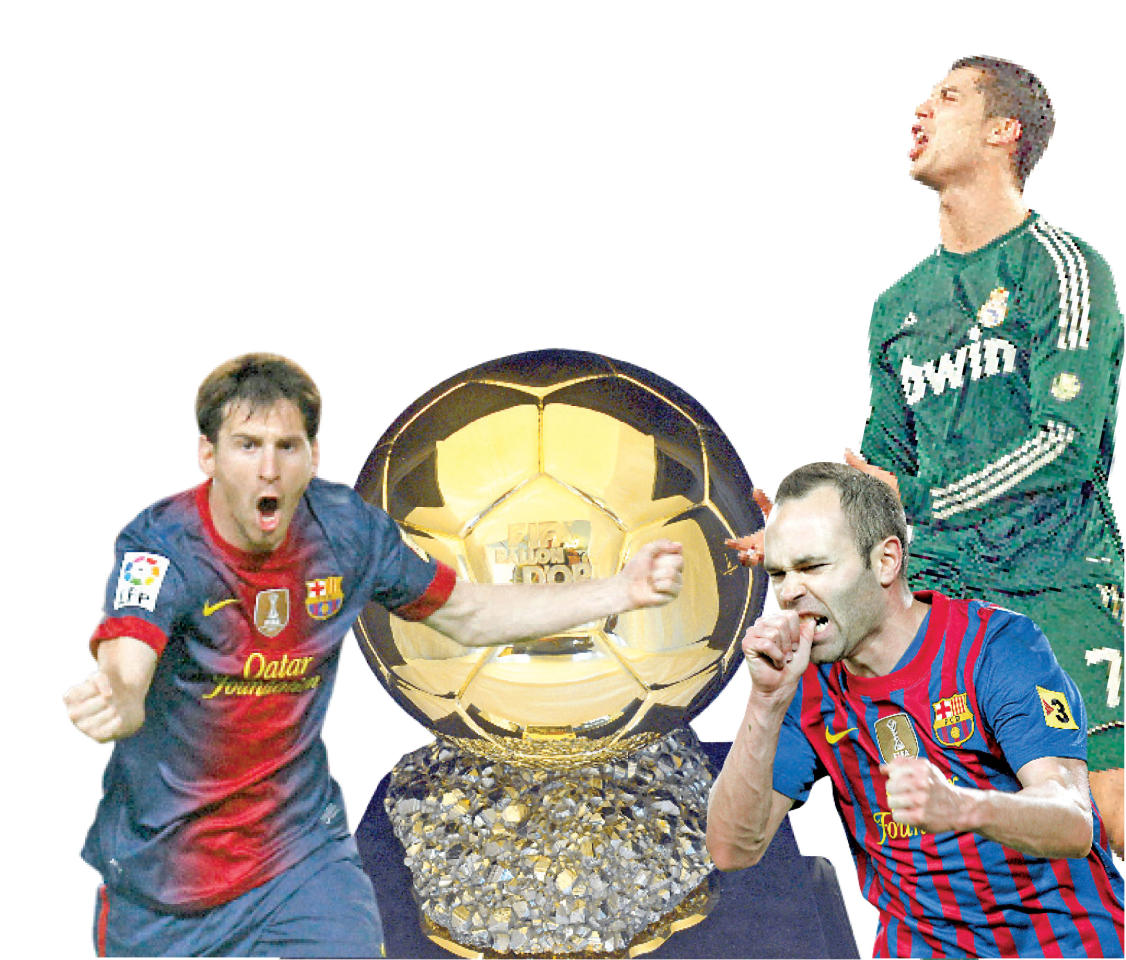 يستعد الأرجنتيني ليونيل ميسي، نجم برشلونة متصدر ترتيب الدوري الإسباني لكرة القدم، للظفر برابع لقب لجائزة الكرة الذهبية، التي يمنحها اليوم الاتحاد الدولي لكرة القدم (فيفا) ومجلة فرانس فوتبول الفرنسية المتخصصة.وانحصر اللقب بين ثلاثة لاعبين هم ميسي وزميله في برشلونة الاسباني اندريس انييسيتا، أفضل لاعب في أوروبا لعام 2012، والبرتغالي كريستيانو رونالدو، مهاجم الخصم اللدود ريال مدريد. وكان ميسي (25 عاما) ظفر بهذه الجائزة في الأعوام الثلاثة الماضية، في حين نالها رونالدو عام 2008، ولم يفز بها انييستا مطلقا. وميسي هو اللاعب الثاني بعد الفرنسي ميشال بلاتيني الذي حصل على جائزة الفيفا 3 سنوات متتالية، بينما حصل عليها الهولنديان يوهان كرويف وماركو فان باستن 3 مرات في اعوام متباعدة، وفوزه اليوم سيجعله صاحب الرقم القياسي.