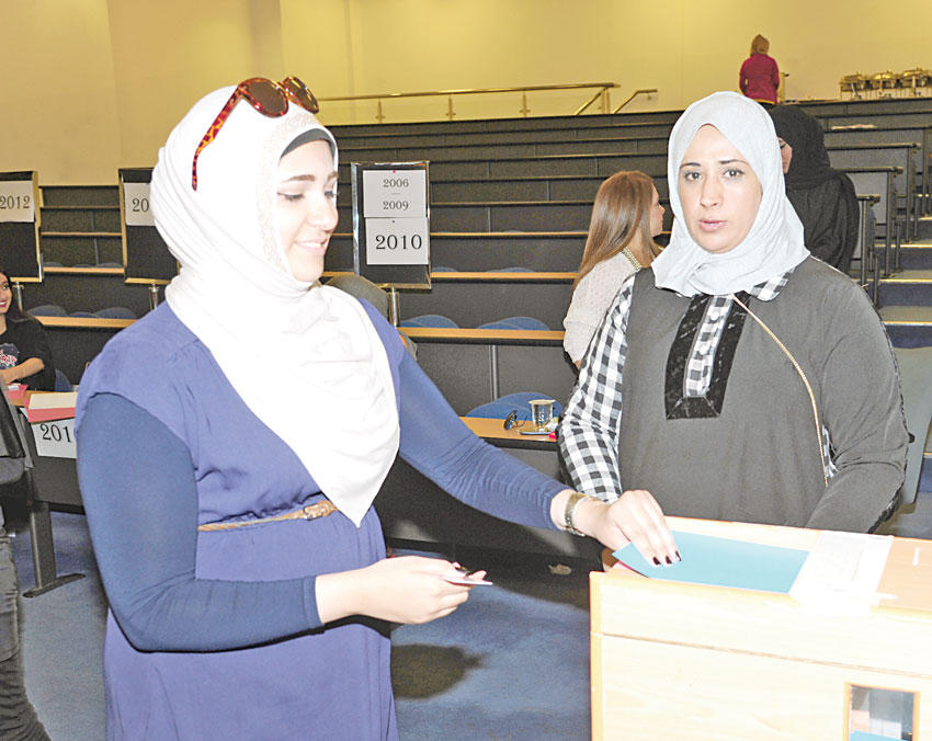وبلغ اجمالي المقترعين في انتخابات الجمعية 829 من اصل 995 مقيدا في الكلية، وعدد الذين لم يقترعوا 166 طالبا وطالبة.وانطلقت انتخابات جمعية العلوم الطبية المساعدة في جامعة الكويت وسط حضور لافت للطالبات المقترعات منذ الدقائق الأولى لفتح صناديق الاقتراع على عكس السنوات النقابية السابقة، ليبرز التنافس الانتخابي الشديد بين القائمتين الوسط الديمقراطي والمنار الطبي.وتوزعت الطالبات على طول الحواجز الموضوعة أمام مقر لجنة الانتخابات لحث الطالبات على التصويت، وقوبل الحضور الكثيف للطالبات بشبه غياب طلابي في لجنة اقتراع الطلاب عن التصويت مع تزايد محدود لأعدادهم مع مرور الوقت، وقد امتلأت مداخل الكلية بلوحات تحمل شعارات القائمتين، وافتتحت اللجان الانتخابية ابوابها عند الساعة الثامنة صباحا في فترة تمتد حتى الثانية.وفي هذا السياق، صرحت نائبة رئيسة لجنة الاقتراع فاطمة العوضي، بأن الاقبال الطلابي جيد جدا حيث بلغ عدد الأصوات 150 صوتا من أصل 910 طالبات مقيدات عند الساعة التاسعة، ومع الساعات الأولى لفتح التصويت كانت اغلبية الأصوات للطالبات المستجدات، ومن المتوقع أن تزداد عند الساعة الثانية عشرة وهو وقت الاستراحة بين المحاضرات الدراسية. وخلت العملية الانتخابية من اي مشاكل تذكر وتم السيطرة على كل شي، لافتة الى أن التصويت بدا الساعة الثامنة صباحا حتى الساعة الثانية ظهرا. وذكر رئيس لجنة اقتراع الطلاب عبدالله المطيري أن الاقبال الطلابي في الفترة الصباحية ضعيف، وهو في تزايد بعد انقضاء فترة المحاضرات، وبلغت الاصوات عند الساعة التاسعة 10 اصوات من أصل 85 طالبا مقيدا، ولفت الى أن الجميع متعاون من القوائم والموظفين والأمن حيث ان العملية الانتخابية تتم على أكمل وجه ونشكر الإدارة وقسم الأمن والسلامة لتسهيلهم للعملية الانتخابية.بينما ذكرت منسقة قائمة المنار الطبي منيرة الهاجري ان الاقبال الطلابي على التصويت كان جيدا منذ الدقائق الأولى لفتح لجان الاقتراع، وأن فترة التحضير للانتخابات والتي استمرت لأسبوعين كانت كافية للقوائم لطرح فكرها ومبادئها وانجازاتها على مدى الاعوام النقابية السابقة.وقالت الهاجري ان القائمة تطمح في الحصول على ثقة الطلبة لان الحصول عليها هو فوز بحد ذاته، كما دعت الطالبات إلى المشاركة بالعرس الانتخابي.وأشارت رئيسة الجمعية السابقة في قائمة الوسط الديمقراطي، لطيفة الظفيري الى أن إقبال الطالبات على التصويت بكثافة من الساعات الأولى هو أمر جديد وسبب ذلك هو التنافس بين القائمتين الوسط الديمقراطي والمنار الطبي حيث احتلت الوسط مقاعد الجمعية لسنتين متتاليتين. ويركزالبرنامج الانتخابي للقائمة على الجانب الأكاديمي والتعليمي للطلبة.وقالت الظفيري ان القائمة بفوزها بمقاعد الجمعية مرتين استطاعت أن تحقق انجازات ليس لها مثيل.وتمنت على القائمة المنافسة مخاطبة عقول الطلبة أكثر من التأثير على الجانب العاطفي والديني وفي كلمة للطلبة تمنت أن يصوت الطلبة للقائمة التي تحترم عقولهم وتحقق لهم الانجازات وتخدمهم بشكل افضل.وفي هذا الصدد قال المشرف العام لانتخابات الجمعيات العلمية والروابط الطلابية بجامعة الكويت للعام النقابي 2013/2014 ناصر الضبيبي أن الانتخابات الطلابية انطلقت اليوم في مركز العلوم الطبية، حيث كانت البداية مع كلية العلوم الطبية المساعدة، موضحا ان الانتخابات خلال الكليات التسع السابقة سارت بالشكل المطلوب وبحسب الخطة التي رسمتها اللجنة العليا وسارت عليها اللجان الانتخابية، مؤكداً في الوقت ذاته أن عجلة انتخابات مركز العلوم الطبية مستمره مع كلية الطب يوم الاربعاء المقبل وكلية الصيدلة يوم الخميس المقبل.