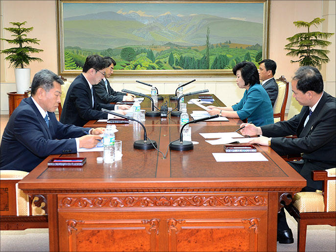 وفي وقت سابق من العام هددت كوريا الشمالية بتوجيه ضربات نووية وصاروخية لكوريا الجنوبية والولايات المتحدة بعد ان فرضت الامم المتحدة عقوبات عليها في فبراير شباط عقب اجرائها تجربة نووية.وكان القصد من محادثات هذا الاسبوع التي ألغيت اعادة فتح المنطقة الصناعية المشتركة بين الشطرين الجنوبي والشمالي في خطوة لبناء الثقة بين الكوريتين وهما من الناحية الرسمية في حالة حرب. وألغيت المحادثات حين اختلف الجانبان على مستوى التمثيل الدبلوماسي لرئيسي الوفدين اللذين كانا سيلتقيان في العاصمة الكورية الجنوبية سول.وقالت لجنة الشمال لاعادة توحيد كوريا سلميا في بيان نقلته وكالة الانباء المركزية الكورية الشمالية "المشكلة... ليست قضية بسيطة متعلقة بمستوى رئيس الوفد في المحادثات لكنها كشف لنية خبيثة لاجهاض المحادثات بين السلطات."وكانت كوريا الجنوبية تريد ان يحضر المحادثات كيم يانج جون المسؤول الكبير بحزب العمال الحاكم وهو مستشار مقرب من الزعيم الكوري الشمالي كيم جونج اون. وقالت بيونجيانج ان هذا شيء غير مقبول في مراسم البروتوكول لان هذا المسؤول أرفع كثيرا من ان يجتمع مع وزير الوحدة الذي يرأس وفد سول.ولا ترد كوريا الشمالية على خط هاتفي ساخن أعادت تشغيله يوم الجمعة بعد ان كانت أوقفته في ابريل نيسان.وكان من المقرر إجراء المحادثات أمس وكانت ستصبح أول محادثات رفيعة المستوى بين الجانبين منذ ما يقرب من ست سنوات.