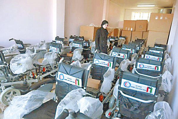 «الهلال الأحمر» تتبرع بـ 30 كرسياً لمعاقين فلسطينيين