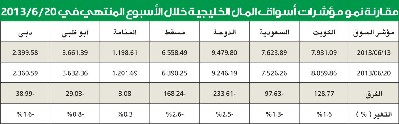 تقرير أسواق المال الخليجية الأسبوعي: تراجع معظم المؤشرات... و«الكويتي» يربح 1.6%