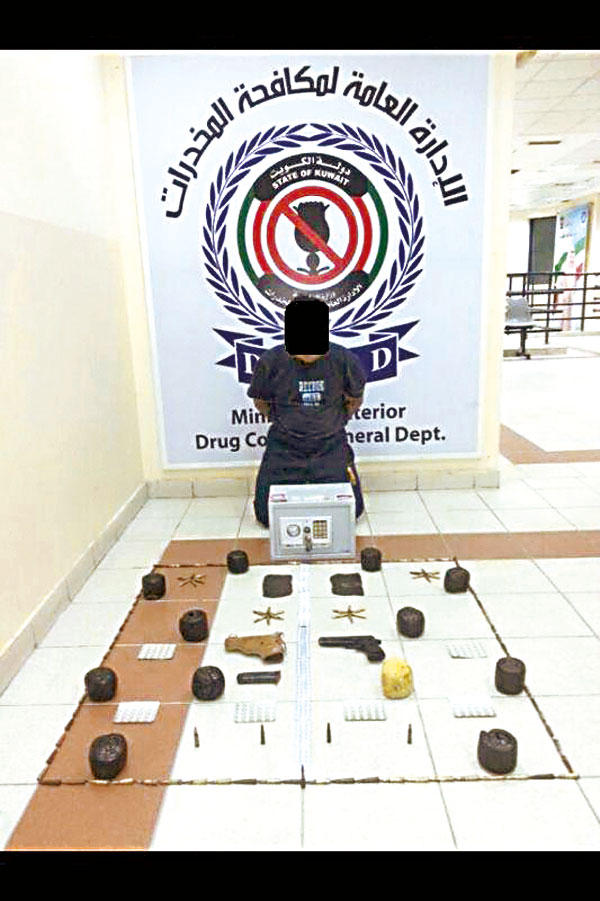 وكانت المعلومات الواردة إلى رجال إدارة العمليات بالإدارة العامة لمكافحة المخدرات أشارت إلى حيازة أحد المواطنين لمواد مخدرة بقصد الاتجار والتعاطي، وبعد إجراء مزيد من التحريات للتأكد من المعلومات واتخاذ الإجراء القانوني اللازم، قام رجال مكافحة المخدرات بضبطه، وذلك من خلال التنسيق مع احد المصادر السرية لشراء كيلو حشيش بمبلغ من المال، وأثناء عملية التسليم والتسلم تم ضبطه، وعثر على المبلغ المرقم، وكيلو حشيش، وبالانتقال إلى مسكنه عثر على 7 كيلوغرامات من مخدر الحشيش على شكل كور، وكمية من المؤثرات العقلية وسلاح ناري مع ذخيرة حية، وبمواجهة المواطن اعترف بما نسب إليه، وتم إحالته والمضبوطات إلى جهة الاختصاص.