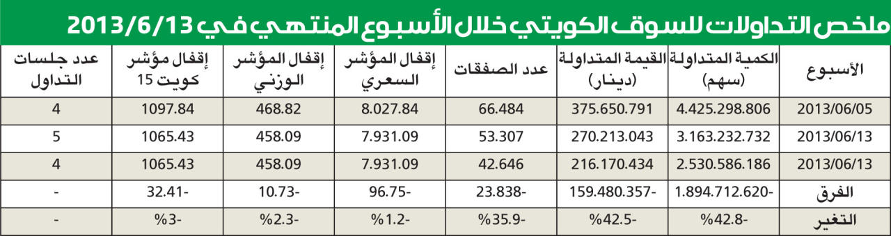 «الكويتي» يتراجع للأسبوع الثاني على التوالي للمرة الأولى هذا العام ويخسر 1.2%