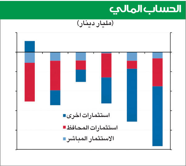 وأضاف ان الارتفاع في فائض الحساب الجاري يعزى في المقام الأول إلى الزيادة في الميزان السلعي التي بلغت 4.8 مليارات دينار، وارتفعت الصادرات السلعية بنسبة 18٪، لتصل إلى 33.4 مليار دينار، على خلفية التوسع في مستويات إنتاج النفط بنسبة بلغت 12٪، مقارنة بنفس الفترة من العام السابق، علاوة على أسعار النفط القياسية التي بلغ متوسطها 109 دولارات للبرميل في عام 2012. في الوقت نفسه، ارتفعت الواردات السلعية بنسبة أبطأ بكثير بلغت 3٪، مقارنة بنفس الفترة من العام السابق لتصل قيمتها إلى 6.3 مليارات دينار.حساب الخدماتوتابع التقرير ان عجز حساب الخدمات استمر في الاتساع ليصل إلى 2.7 مليار دينار، تقوده واردات خدمات السفر بقيمة 2.4 مليار دينار، كما شهدت واردات خدمات الإنشاء أكبر ارتفاع بنحو 0.3 مليار دينار، مقارنة بنفس الفترة من العام السابق، ومن الممكن أن ترتفع أكثر من ذلك هذا العام مع إسراع الحكومة في تنفيذ المشاريع ضمن خطة التنمية.وزاد انه في الوقت نفسه شهد صافي الدخل من الاستثمار ارتفاعا طفيفا، ليصل إلى 2.6 مليار دينار، مرتفعا بنحو 0.1 مليار دينار عن العام السابق، وتشمل هذه التدفقات الواردة عوائد الموجودات المدرة للدخل والمملوكة للحكومة بشكل رئيسي.واردف ان الدخل من استثمارات المحافظ والاستثمارات المباشرة انخفض بشكل طفيف، لكن تم تعويض ذلك بالزيادات في التدفقات الواردة من الاستثمارات الأخرى، والتي ارتفعت بنسبة كبيرة بلغت 50٪ مقارنة بنفس الفترة من العام السابق.واشار الى ان التحويلات الجارية إلى الخارج ارتفعت بقيمة بلغت نحو 0.8 مليار دينار في عام 2012، حيث ارتفعت تحويلات العمالة الوافدة إلى الخارج بنسبة 21٪ مقارنة بنفس الفترة من العام السابق، لتسجل مستوى قياسيا بلغ 4.4 مليارات دينار.وافاد بأن هذا الارتفاع يعد أكبر من المتوقع في ضوء الزيادة البالغة 3٪ في عدد الوافدين في القوى العاملة خلال العام، ولا يمكن الوقوف على أسباب واضحة لهذه الزيادة، لكن من الممكن أن يعكس ذلك زيادة التحويلات من الجالية المصرية في ضوء ضعف الاقتصاد المصري، وكذلك زيادة تحويلات الجالية الهندية مستفيدة من ضعف الروبية.انخفاض الصادراتوذكر التقرير: "نتوقع أن يتقلص الفائض في الحساب الجاري هذا العام إلى ما بين 35٪ و40٪ من الناتج المحلي الإجمالي، نتيجة لانخفاض الصادرات وزيادة الواردات، إذ من المرجح أن يحد كل من انخفاض أسعار النفط وتقليص مستويات الإنتاج من صادرات النفط. وفي الوقت نفسه، من المرجح أن يساعد التحسن في نمو الاقتصاد (القطاع غير النفطي) على ارتفاع الواردات في عام 2013". واستدرك ان الحساب المالي والرأسمالي يسجل صافي التغير في ملكية الموجودات الأجنبية، سواء كانت سندات الدين أو أسهم الملكية أو عملات وودائع أو بنودا أخرى، وتعكس هذه التغيرات في مجملها التغيرات في الحساب الجاري، لكن في الاتجاه المعاكس. فارتفاع في فائض الحساب الجاري يولد ارتفاعا في عجز الحساب المالي والرأسمالي.واشار الى انه "حيث إن الكويت عادة ما تحقق فائضا في الحساب الجاري، فإنها عادة ما تتجه إلى تحقيق تدفقات خارجية كبيرة لرأس المال، بما يمثل ارتفاعا في استثمارات البلاد في الخارج. ولم يكن عام 2012 استثناء، فقد شهد الحساب المالي والرأسمالي عجزاً قياسياً بلغ 22.9 مليار دينار، أي بارتفاع كبير يبلغ 6.1 مليارات دينار عن العام السابق".واضاف ان العجز المتزايد يرجع بشكل رئيسي إلى استثمارات المحافظ في الحساب المالي، التي شهدت ارتفاعا في التدفقات إلى الخارج بقيمة 5.1 مليارات دينار في عام 2012، وبلغ صافي الاستثمارات في الأوراق المالية الأجنبية 7.2 مليارات دينار، وهو أعلى مستوى لها للفترة ما بعد الأزمة المالية، وقد نتج معظم هذا الارتفاع عن زيادة الاستثمارات الكويتية في سندات الدين الأجنبية، والتي شهدت في العام السابق عودة استثمارات تقدّر بحوالي 0.4 مليار دينار.اتساع العجزوقال التقرير انه بالنسبة لحساب الاستثمارات الأخرى، الذي شكل أكبر مصدر منفرد للتدفقات الخارجة منذ عام 2009، ف