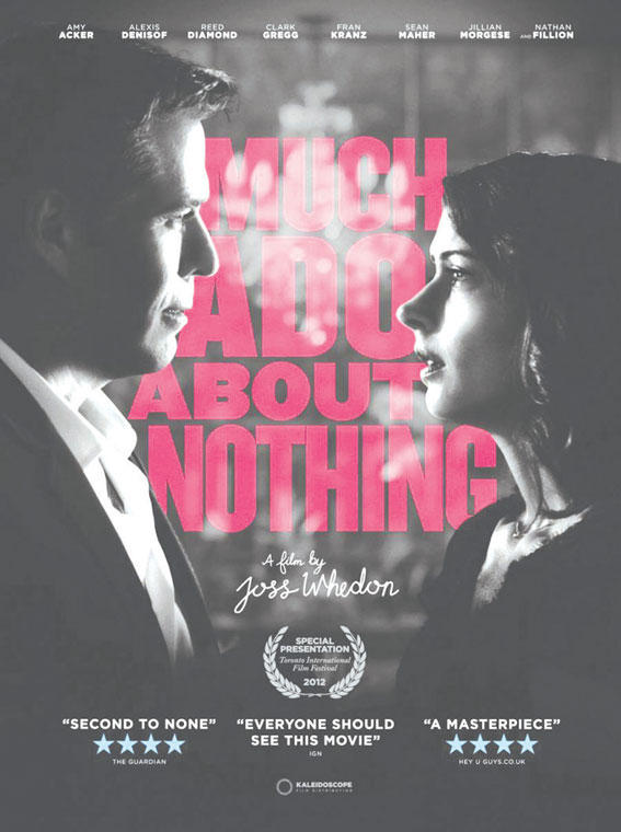 يدرك ويدون ذلك أيضاً. عندما يضع صانع الأفلام المبدع هذا (48 سنة) اسمه على فيلم رعب (Cabin in the Woods)، يجتذب حضوراً ما كان ليشاهد الفيلم لولاه. وعندما يقرر العمل على سلسلة أفلام ضخمة مقتبسة من قصص مصورة مثل The Avengers ويبرع فيها، نؤكّد لكم أن نصف المشاهدين على الأقل سيلفون أيديهم حول كتفيهم فرحاً، ينظرون من حولهم في دار السينما، ويقولون: {أخبرناكم أنه مميز}.ولكن هل يتمكن ويدون وملهمه على الشاشة، فيليون، من اجتذاب ذلك الجمهور المتردد إلى مشاهدة فيلم لشكسبير؟ ثمة رسالة، كما يوضح قسم تسويق العمل، وراء فيلم ويدون المنخفض الميزانية إنما المثير الذي يحمل العنوان Much Ado about Nothing.ينضم ويدون إلى بعض أعظم رجالات السينما، مثل ويلز وأوليفيه وبولانسكي وبراناه، وهم صانعو أفلام عشقوا شكسبير وحاولوا، على حدّ تعبير ويدون، {حمل الجمهور على مشاهدته}.يضيف ويدون: {يرغب كل مَن يحبّ شكسبير في الحصول على فرصة يُظهر من خلالها مدى تأثره به. يُعتبر هذا أشبه بتأكيد لإبداع شكسبير. فقد أثّر فيّ. ولا شك في أنه سيؤثر فيك أيضاً}.وإذا تدفق الجمهور لمشاهدة العمل، فهذا جيد جدّاً. يوضح ويدون، مشيراً إلى توقعه الإقبال المحدود على Much Ado about Nothing: {لا أحد يعدّ عملاً لشكسبير إلى فيلم لغاية غير حبّه لهذا المبدع. نُرغم في المدرسة الثانوية على الاطلاع على أعمال شكسبير. أما عندما نكبر، فنتناول أعمال الشاعر لأننا نحبه فحسب}.يقيم ويدون وزوجته كاي كول حفلات غداء احتفالاً بشكسبير أيام الآحاد في منزلهما الضخم الذي صممته كول في لوس أنجليس. يتذكّر فيليون أنهما اعتادا دعوة الكثير من الممثلين المتعددي المواهب، الذين عمل معهم ويدون في التلفزيون، {لتقديم مسرحية}. وحققت الحفلات نجاحاً كبيراً عندما تناولت أعمالاً فكاهية، خصوصاً Much Ado About Nothing. يوضح ويدون: {كلما تحمسنا، تحسّن أداؤنا}. إنعاش الروحكان الكاتب والمخرج، الذي يشتهر بإخلاصه القوي لممثليه، يتوق إلى فرصة ليقدّم صديقيه آني آكر (Angel) وألكسيس دينيسوف (Angel وDollhouse). فتحوّل هذا إلى مشروع أقنعته السيدة ويدون بتصويره كوسيلة {لإنعاش روحه} خلال فترة الاستراحة بين تصوير The Avengers وبدء عملية تحريره. لجأ ويدون إلى ممثلين، مثل آكر، دينيسوف، كلارك غريغ، فيليون (الذي أدّى دور دوغبيري الفكاهي)، وآشلي جونسون. وفي منزل عصري وبملابس عصرية، حوّلوا خلال 12 يوماً أو ربما أسبوعين Much Ado من مجرد مسرحية في حفلة إلى فيلم.يذكر فيليون، متحدثاً عن ويدون: {كانت هذه فكرته عن العطلة. يعشق اللغة، القصص، المواضيع... أعتقد أن أي مدرّس في الصفوف الثانوية سيفرح بالفيلم لأنه يبرهن أن باستطاعة أي إنسان أن يستمتع بأعمال شكسبير. كنت أحد أولئك الأولاد الذين يكرهون سماع اسم شكسبير، ولكن لو تسنت لي مشاهدة فيلم مماثل وأنا صغير، لبدّلت رأيي}.كاثرين شوارد من صحيفة Guardian من النقاد الذين أثنوا على الفيلم و{براعة ويدون في الكوميديا... مقاربته الجريئة من التخلي عن النكات الفاشلة}، فضلاً عن {اعتماده ببراعة على المشاهد الفكاهية}.يوضح ويدون من جهته أن مسرحية Much Ado about Nothing {لا تُعتبر محصنة ضد سردها بغباء. فقد شاهدتُ أعمالاً سيئة عنها. لكنها مبنية بإتقان يعجز الناس عادةً عن فهمه}. يعشق كاتب السيناريو هذا التحليل، الهدم، وفهم لمَ هذه المسرحية التي كُتبت قبل 415 سنة لا تزال ناجحة.يذكر ويدون: {يعود ذلك إلى تركيبتها الغنية التي تجمع بين الكوميديا والدراما. رأيت فيها كوميديا سوداء}. ولهذا السبب قرر تصوير الفيلم بالأبيض والأسود. يقول: {أعتقد أن هذه القصة تحتوي على كثير من السوداوية وراء الفكاهة، ما يجعلها أكثر عمقاً من مجرد القول: انظروا إلى هؤلاء الناس وهم يتغازلون ويستمتعون بوقتهم}.استعاد ويدون انتعاشه وها هو اليوم يواصل العمل على Avengers II. ولكن بما أن ويدون يقر بأن Much Ado about Nothing مجرّد تمهيد يغريك بمعالجة مواضيع إضافية من أعمال شكسبير، وبما أن أعمال جوس ويدون لا تكتمل من دون الحديث عن أجزاء عدة، فهل تشمل أعمال صانع الأفلام هذا في المستقبل مسرحيات أخرى لش