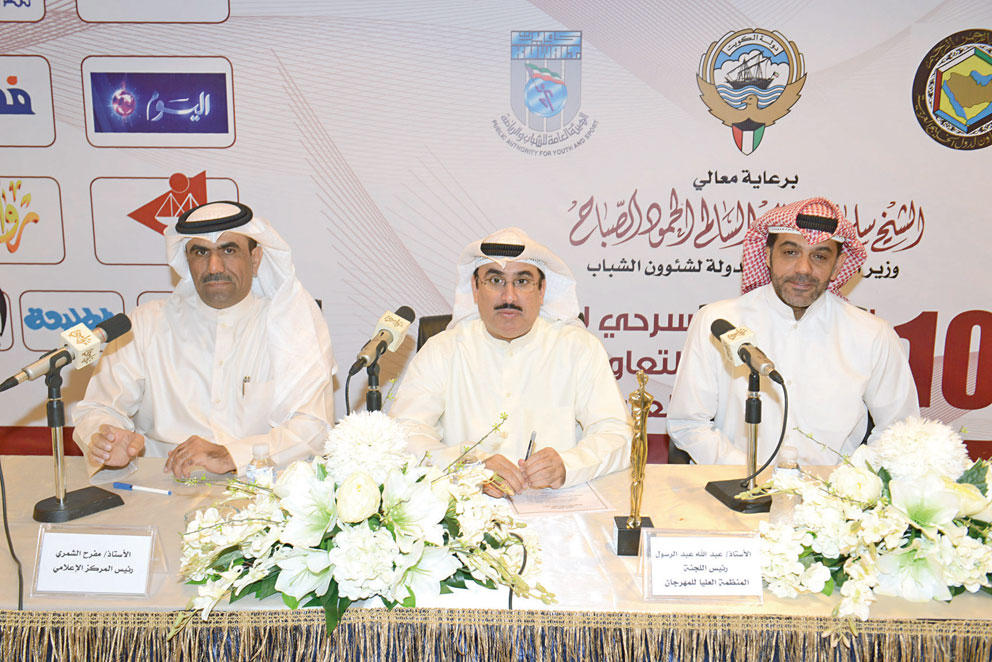 اختتمت المؤتمرات الصحافية لمهرجان الخليج المسرحي العاشر للشباب أمس الأول في المركز الإعلامي بمسرح الدسمة، مع نائب المدير العام لقطاع الشباب بالإنابة في الهيئة العامة لشؤون الشباب والرياضة ورئيس اللجنة المنظمة للمهرجان عبدالله عبدالرسول، ونائب رئيس اللجنة المنظمة ورئيس مسرح الشباب علي وحيدي، وأدار المؤتمر الزميل مفرح الشمري.استهل عبدالله عبدالرسول حديثه مثمناً الدور البارز للأمانة العامة لمجلس التعاون لدول الخليج العربية في دعم المهرجان، ثم قدم شكره للفرق الخليجية على مشاركتها، وللصحافة الكويتية على متابعتها وتغطيتها لفعاليات هذه الدورة، ولأعضاء اللجنة المنظمة والمتطوعين الشباب. وعن تكريم المهرجان لوسائل الإعلام المحلية، قال عبدالرسول إنه من واجبنا أن نتشرف بتكريم الأسرة الإعلامية من الصحافة الفنية والفضائيات التي أسهمت في إبراز فعاليات المهرجان، وكانت دعامة أساسية للحركة الشبابية المسرحية.ولفت عبدالرسول إلى أن هذه الدورة تمنح 13 جائزة مالية إلى جانب ست جوائز نقدية مقدمة من لجنة التحكيم للفئات المشاركة، إضافة أن جائزة أفضل عرض مسرحي متكامل تبلغ قيمتها خمسة آلاف دينار.وأكد عبدالرسول أنه مع منح الجوائز لا إلغائها، لأنها تحفز وتشجع الشباب المسرحي وتسهم في رفع روح المنافسة، مؤكدا أن مسألة التقييم مهمة لخلق التنافس بين المسرحيين الشباب، لا سيما أن اللائحة في المهرجان هي من وضعت هذه الضوابط لصنع المنافسة في المسابقة الرسمية وشروط تكريم الرواد الكبار.بدوره، قدم علي وحيدي نائب رئيس اللجنة المنظمة العليا في المهرجان الشكر لكل اللجان العاملة والمسرحيين الذين ساهموا بإنجاح هذه التظاهرة الخليجية الشبابية المسرحية الواعدة، مشيدا بالدور الكبير الذي لعبه عبدالله عبدالرسول، مثمنا دور وسائل الإعلام المحلية التي واكبت فعاليات المهرجان أولا بأول، والفرق العاملة والتنظيمية التي أدت واجبها على أكمل وجه ورفعت اسم الكويت عاليا.
