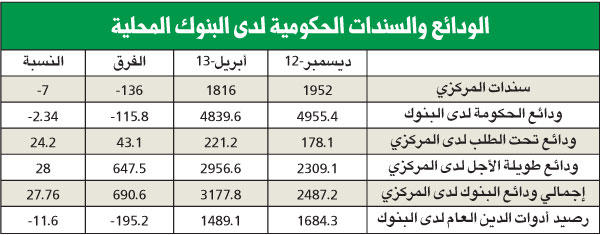 كشفت البيانات الاخيرة لبنك الكويت المركزي أن الحكومة واصلت خفض أرصدتها لدى البنوك المحلية لتخفيف حدة تخمة السيولة التي تعانيها البنوك منذ فترة طويلة، حيث أظهرت البيانات انخفاض رصيد أدوات الدين العام لدى البنوك المحلية خلال الشهور الاربعة الاولى من العام الجاري بشكل لافت بنسبة بلغت 11.6 في المئة وبقيمة 195.2 مليون دينار لتنخفض من 1.684 مليار دينار إلى 1.489 مليار دينار.كما انخفضت الودائع الحكومية لدى البنوك بنسبة 2.34 في المئة لتنخفض من 4.955 مليارات دينار إلى 4.839 مليارات دينار بانخفاض بلغ 115.8 مليون دينار.كما انخفضت قيمة سندات البنك المركزي لدى البنوك المحلية بنسبة 7 في المئة لتنخفض من 1.952 مليار دينار إلى 1.816 مليار دينار بانخفاض بلغ 136 مليون دينار، في حين ارتفع اجمالي ودائع البنوك لدى البنك المركزي بنسبة 27.76 في المئة لترتفع من 2.487 مليار دينار إلى 3.177 مليار دينار بارتفاع 690.6 مليون دينار. وتنقسم هذه الودائع إلى نوعين: الاول (ودائع تحت الطلب) والتي زادت بنسبة 24.2 في المئة لترتفع من 178.1 مليون دينار إلى 221.2 مليون دينار بزيادة قدرها 43.1 مليون دينار، أما النوع الثاني (ودائع طويلة الاجل) والتي ارتفعت بنسبة 28 في المئة من 2.309 مليار دينار إلى 2.956 مليار دينار بزيادة 647.5 مليون دينار.سيولة كافية ومن جانبها، أكدت مصادر مصرفية أن الحكومة مقتنعة بأن البنوك المحلية اصبحت لا تحتاج إلى دعم لسيولتها وهو ما دفعها إلى تخفيف وسحب ودائع وسيولتها من البنوك لاستخدامها في مشاريع تنموية واستثمارات قد تدر عوائد أكبر.في المقابل أشارت المصادر إلى أن بنك الكويت المركزي اصبح متحفظاً في طرح سندات جديدة منذ بداية العام الجاري، وذلك لأن الهدف الرئيسي من الطرح كان امتصاص سيولة البنوك التي لا تجد قنوات كثيرة لاستثمار سيولتها، ولكن مع نهاية العام الماضي، عاد السوق الائتماني مرة أخرى للانتعاش (بشكل متحفظ)، وهو ما أظهرته نتائج البنوك خلال الربع الاول من العام الجاري.تحسن البيئة التشغيليةوأكدت المصادر تحسن البيئة التشغيلية للقطاع المصرفي خلال الفترة الاخيرة مع تمرير بعض المشاريع التنموية وبعض القوانين الاقتصادية الهامة التي تدفع العجلة الاقتصادية للبلد وهو الامر الذي انعكس ايجابياً على قدرة البنوك في توظيف سيولتها وانتعاش سوق الائتمان مرة أخرى.وأشارت إلى أن انتعاش سوق الائتمان اعتمد في المقام الاول على قطاع تمويلات الافراد، بالاضافة الى قيام البنوك بتقديم تمويلات جديدة إلى شركات الاستثمار التي اصبحت قادرة على توفير ضمانات امام التزاماتها، وذلك مع التحسن الملحوظ الذي شهدتها القيم السوقية في سوق الكويت للأوراق المالية، مما أدى إلى ارتفاع قيمة ضمانات الاسهم لديها مقابل القروض، وهو ما سيجعلها تخفف من بناء المخصصات التي كانت تتخذها مقابل انخفاض قيمة هذه الضمانات.