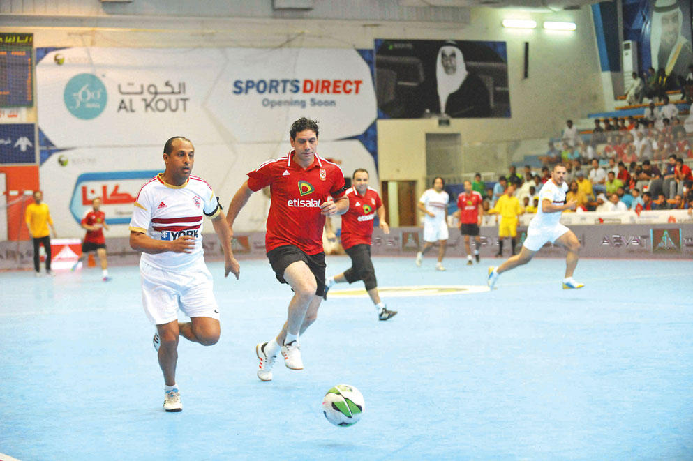 في المباراة الأولى سعى فريق الأهلي لتحقيق انتصاره الأول في الدورة، ولكنه واجه صعوبات كبيرة لكبح جماح فريق سينكسيب الذي تمكن بفضل خبرات محترفيه من زيارة شباك الأهلي مرتين عن طريق فواز والكسندري، قبل أن يسجل المصري إسلام محمد هدف الأهلي الوحيد من ركلة جزاء.وفي اللقاء الثاني لم يجد فريق المرحوم أحمد الرومي صعوبة في تخطي لبنان بخماسية، بعدما أحكم سيطرته على مجريات اللعب، ونجح لاعبوه ماركوس وعبدالله البلوشي في تسجيل هدفين لكل منهما، في حين أضاف محمد شهاب الهدف الخامس.و شهدت المواجهة الاخيرة بين فريق المرحوم سلمان الرومي والخطوط الجوية القطرية ندية واثارة، وفرض التعادل نفسه على المباراة حتى الدقائق الاخيرة التي شهدت تسجيل الرومي هدفين في الدقيقة 19 عن طريق جوليو سيسار وكاسيانو دي ميلو.«بي آر تي لاين» ينشد التأهل اليومتتواصل منافسات الدورة بإقامة ثلاث مباريات اليوم الأربعاء، حيث يلتقي اتوم سبورتنغ مع بي ار تي لاين، وبنك الادخار ونادي السالمية، وفريق المرحوم الدكتور جابر سمير مع كويت ستيل.وسيكون لقاء سبورتنغ ولاين في غاية الأهمية خاصة ان الفائز سيتأهل مباشرة للدور المقبل، كما أن التعادل سيكفي بي ار تي لاين لحسم بطاقة العبور بعد ان حصد أربع نقاط من أول مواجهتين، بينما سيكون اتوم في اشد الحاجة للفوز لتوقف رصيده عند ثلاث نقاط.ينطبق الأمر ذاته على المباراة الثانية التي تجمع السالمية مع الادخار، وان كانت كفة السالمية أرجح لحسم التأهل.شباب سلوى يتغلبون على روديبثنائية في «البراعم» بلغت فرق شباب سلوى والكويت والمرحوم خالد جابر المربع الذهبي للمجموعة الأولى لدورة البراعم الثالثة بتغلب شباب سلوى على فريق رودي بهدفين من دون رد في افتتاح منافسات اليوم الثالث عشر للدورة، كما حقق الكويت الفوز بهدف على كيو 8، في حين تخطى فريق المرحوم خالد جابر منافسه نجوم البراعم بثلاثية.في المباراة الأولى تمكن شباب سلوى من انتزاع الفوز بهدفين سجلهم زامل محمد وميلاد خليل ليطيحوا برودي خارج الدورة، وفي اللقاء الثاني سارت المباراة سجالا بين فريق الكويت وكيو 8 وفرض التعادل نفسه على النتيجة حتى تمكن عبدالله عباس من وضع الكويت في المقدمة بخطفه هدف الفوز، أما اللقاء الأخير فلم يجد خلاله فريق المرحوم خالد جابر صعوبة في إنهاء المباراة لمصلحته بثلاثية على حساب نجوم البراعم.وتتواصل اليوم الأربعاء منافسات الدورة بإقامة 3 مواجهات ضمن المجموعة الثالثة حيث يلاقي نوتنغهام فورست أكاديمية الخليجن ويصطدم فريق المرحوم خلف الشنفا مع أبو سليمان، في حين يلتقي مركز كيكر للتدريب مع ألين.نجوم الأهلي والزمالك أشعلوا الحماسأشعل نجوم الأهلي والزمالك حماس جمهور دورة الروضان، خلال مباراة الدربي التي جمعتهما على هامش منافسات اليوم الثالث عشر، في احتفالية رائعة على أنغام الأغاني والهتافات المصرية التي أضفت أجواء من البهجة والمتعة على اللقاء الاستعراضي الذي انتهى بالتعادل الايجابي بهدفين لكل منهما. وبدأت الاحتفالية بقيام نادر السيد كابتن الأهلي، ومدحت عبدالهادي كابتن الزمالك بإلقاء قسم الدورة الذي حث على نبذ التطرف والتحلي بالأخلاق الحميدة، وهو القسم الذي ارتبط بمباريات الدربي الاستعراضية التي ستقام على هامش النسخة الحالية، ثم وقف الجمهور واللاعبون دقيقة حداد على روح فقيد الكرة المصرية والعربية إبراهيم يوسف لاعب الزمالك السابق. وشارك مع الأهلي الخماسي المعتزل نادر السيد ومحمد عمارة وسمير كمونة وخالد بيبو وهشام حنفي، بينما لعب للزمالك مدحت عبدالهادي وعمرو زكي وكريم حسن شحاتة وعبدالحليم علي وطارق مصطفى والحارس خالد الفضلي.وتميز اللقاء بالإثارة والتشويق واللمسات الرائعة التي قدمها نجوم الفريقين طوال شوطي اللقاء، الذي افتتح فيه الأهلي التسجيل عن طريق بيبو، ثم أدرك عمرو زكي التعادل للزمالك قبل أن يضيف كريم شحاتة الهدف الثاني، ثم أنقذ بيبو نجم اللقاء الأهلي من الخسارة بتسجيله هدف التعادل في الثوا