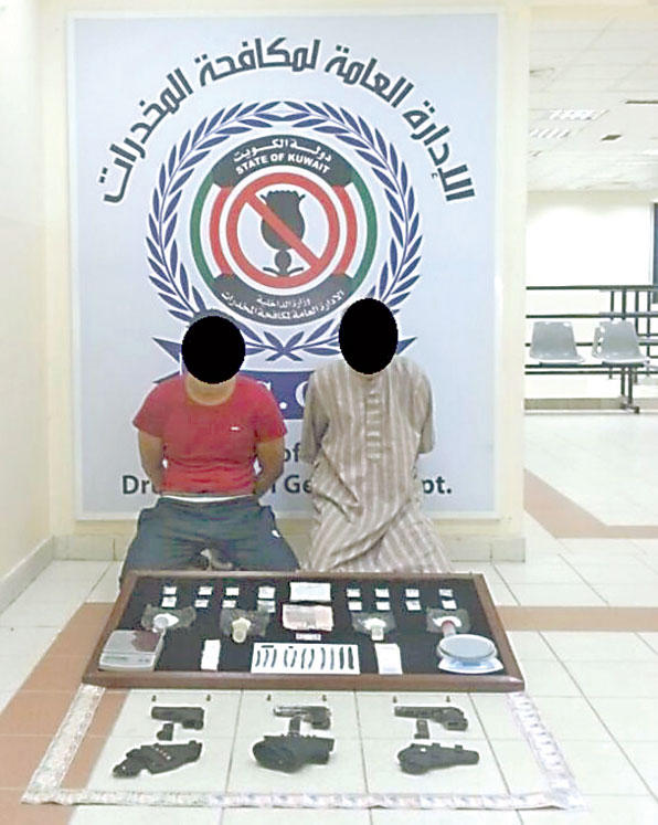 معلومات سريةوفي التفاصيل التي رواها مصدر أمني لـ«الجريدة» ان معلومات سرية وصلت إلى مدير عام الإدارة العامة لمكافحة المخدرات العميد صالح العنزي، تفيد بنشاط مواطن في عملية الاتجار بمادتي الحشيش والايس المخدرتين، مشيرا إلى أن المعلومات تحدثت أيضاً عن أن المواطن يحوز سلاحا ناريا وذخيرة، وهو حذر وشرس جداً.وأضاف المصدر أن العميد العنزي كلف إدارة المكافحة المحلية بالتأكد من صحة المعلومات ووضع المواطن تحت المراقبة والتأكد من نشاطه الإجرامي، لافتا إلى أن رجال المباحث بعد مراقبة استمرت حوالي أسبوعين تأكدوا من ضلوع المواطن في عملية ترويج المخدرات، وتأكدوا أيضا أنه يحوز مواد مخدرة معدة للبيع للمتعاطين، مشيرا إلى أن رجال المباحث نجحوا في تجنيد مصدر سري لهم تعامل مع المواطن، إذ إن التحريات دلت على أن المواطن حذر ويتعامل في دائرة ضيقة جدا. صفقة مع المصدر السريوذكر المصدر أن رجال المباحث أرسلوا المصدر السري إلى المواطن واتفق معه على شراء كمية من مادة الحشيش المخدرة، الأمر الذي وافق عليه المواطن وحدد إحدى الساحات الترابية في منطقة عبدالله المبارك موقعاً لعملية التسلّم والتسليم، لافتاً إلى أنه في الزمان والمكان المحددين حضر المواطن وسلم المصدر المخدرات وتسلم بدوره نقود رجال المباحث الذين أطبقوا عليه، إلا أن المواطن أبدى مقاومة شديدة وحاول استخدام سلاح ناري كان بحوزته وجاهز للاستعمال، لكن رجال المباحث تمكنوا من السيطرة عليه وسحبوا السلاح الناري منه واقتادوه إلى مكتب التحقيق.اعترافات مثيرة ومداهمةوأشار المصدر إلى أن المواطن اعترف لرجال المباحث بأنه يتحصل على المخدرات من شريكه الخليجي، وأنه مجرد موزع، وأن الخليجي يحوز كمية كبيرة من المخدرات داخل منزله في محافظة الفروانية، لافتاً إلى أن رجال المباحث استصدروا إذنا من النيابة العامة لمداهمة منزل الخليجي بناء على اعترافات المواطن، موضحا أن النيابة العامة صرحت لرجال المباحث بضبط وإحضار الخليجي وتفتيش مسكنه. وأوضح المصدر أن رجال المباحث داهموا منزل الخليجي الذي حاول مقاومتهم أيضا بشراسة، إلا أنهم تمكنوا من السيطرة عليه وبتفتيش مسكنه عثروا على 11 اصبعا من مادة الحشيش وربع كيلو من مادة الشبو المخدرة وسلاحين ناريين وذخيرة، مشيرا إلى أن رجال المباحث أحالوا الخليجي إلى مكتب التحقيق، واعترف بأنه وشريكه المواطن يتاجران بالمخدرات وتمت إحالتهما إلى النيابة العامة.