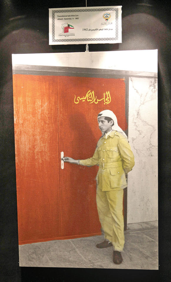 صور تسجيليةومن جانبه، قال مدير إدارة الإعلام في مجلس الأمة مظفر عبدالله إن العشرين صورة في المعرض انتُقيت بدقة متناهية لتشكل شريطاً سينمائيا يختزل تلك المرحلة التاريخية المهمة في الكويت، مبيناً أن هذه الصور ترصد حركة تدشين المجلس التأسيسي والانتخابات وعملية الاقتراع والنطق السامي وإقرار الدستور.وفي حديث عن المعالجة الفنية للصور، يشير عبدالله إلى إجراء بعض التعديلات عبر فن «البوب آرت» لإجراء إضافات لونية على صور الأبيض والأسود لتواكب العصر.وبشأن تنظيم فعاليات أخرى بالتنسيق مع المجلس الوطني، يبين أن «الأمانة العامة في مجلس الأمة ستزود المكتبة الوطنية التابعة للمجلس الوطني بنسخ من الصور ومجموعة إصداراتنا المتعلقة بالمجلس التأسيسي والدستور وكتب التوعية البرلمانية والدستورية واللائحة الداخلية، وسيجرى تنظيم معارض منوعة خلال الفترة المقبلة». إضافات لونيةأما مدير إدارة الفنون التشكيلية في المجلس الوطني محمد العسعوسي فقد أعرب عن سعادته لتنظيم معرض فوتوغرافي يتزامن مع مرور خمسين عاماً على المصادقة على الدستور الكويتي، خصوصا أنه يسجل لأحداث تاريخية لم تعاصرها الأجيال الحديثة، معتبراً أن الإضافات اللونية أضفت جمالية على الصور وروحاً جديدة.وأضاف: «اتفقنا مع الأمانة العامة في مجلس الأمة على تنظيم معارض جديدة في أماكن متفرقة دعماً للتعاون بين المؤسستين، ولتعريف الأجيال الراهنة بملامح من التاريخ السياسي المحلي».لقطات منوعةويضمن المعرض عدداً من الصور الفوتوغرافية منها لقطة للأمير الراحل عبدالله السالم من حفل افتتاح المجلس التأسيسي في يناير عام 1962، وصورة لإحدى الجلسات ويظهر فيها الأمير الراحل الشيخ جابر الأحمد حينما كان وزيراً للمالية والنائب أحمد الخطيب، وصورة تضم سمو الشيخ صباح السالم ولي العهد آنذاك ونائب رئيس المجلس التأسيسي د. أحمد الخطيب ووزير الصحة العامة عبد العزيز حمد الصقر، ولقطة تضم الشيخ صباح السالم وعبداللطيف الشملان، وكذلك يتضمن المعرض مجموعة صور أخرى لرجال وزارة الداخلية أمام لوحة إرشادية في أحد مراكز الاقتراع وصورة لتوزيع البيانات والبرامج الانتخابية على الناخبين في مراكز الانتخابات، وصوراً للحملات الإعلانية الانتخابية وصورة لأحد الناخبين يضع ورقة التصويت في صندوق الاقتراع، وصورة لرئيس المجلس التأسيسي عبداللطيف ثنيان الغانم.