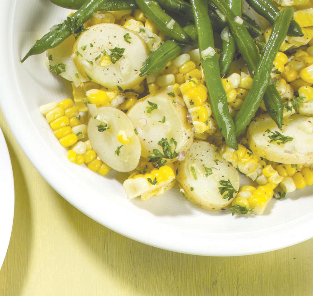 حين فتحنا كتاب ميليسا هاملتون وكريستوفر هيرشايمر بعنوان Canal House Cooks Every Day، لفت انتباهنا بعض وصفات الحساء البارد بالذرة، لكن سرعان ما وقعنا تحت سحر طبق «السوكوتاش» التقليدي بالذرة والفاصولياء. نبدأ باستعمال بقايا الذرة ولا داعي لاحتساب المقادير بشكل متساوٍ بحسب الكاتبَين. هذه السلطة لا تتطلب دقة عالية بل يسهل تحضيرها. يمكنك إضافة بعض الزيتون والجبنة المالحة أيضاً.